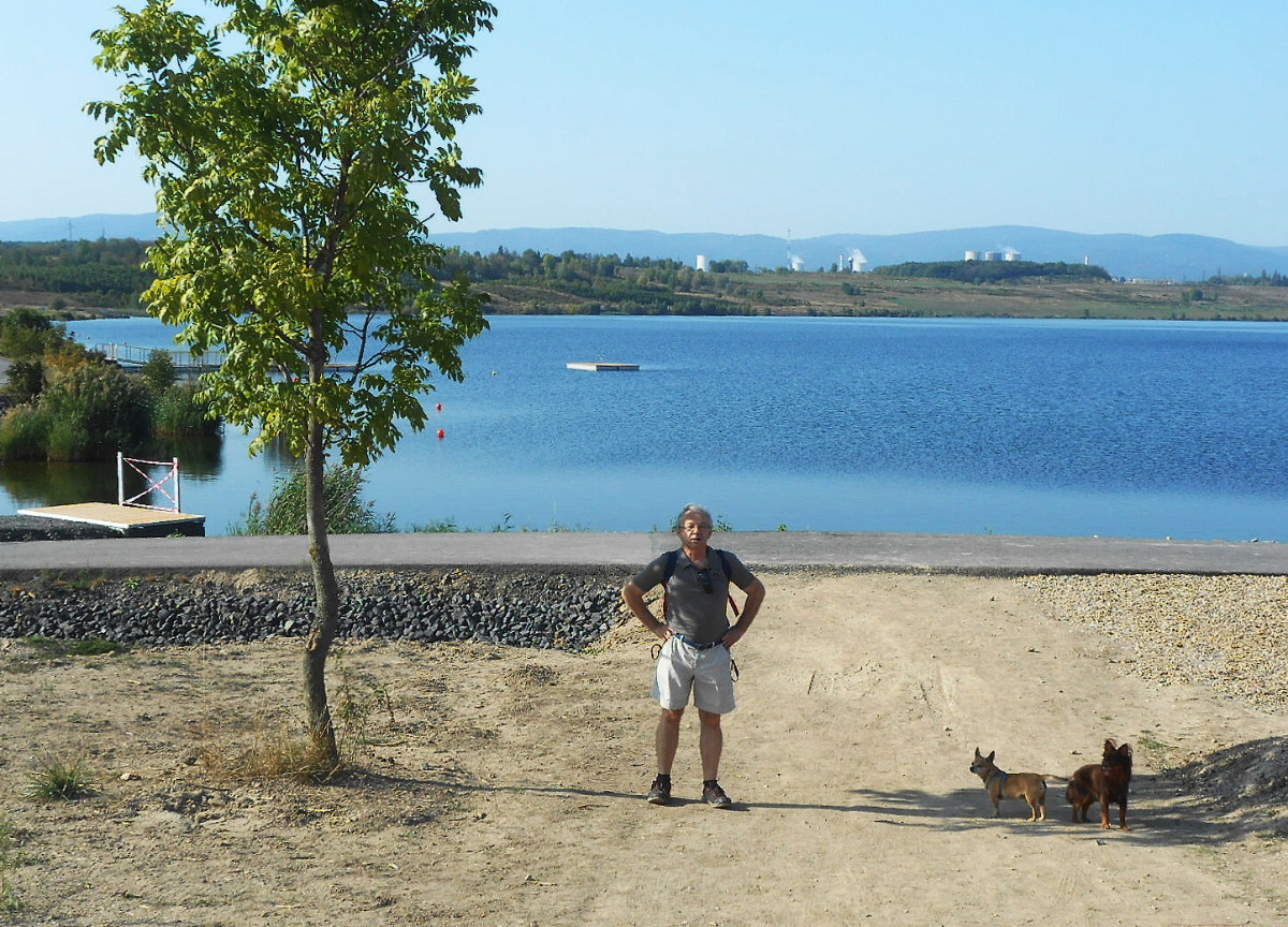 Tentokrát se kufrování nekonalo, cestu dobře známe, a tak jsme po hodině jízdy uviděli kousek jezera a za chvíli už jsme se kochali celým. Hodně nám to připomínalo ústeckou Miladu, u zatopených dolů to asi jinak nejde. Musím přiznat, že na nás udělalo velký dojem. Plocha jezera je opravdu impozantní, kolem už vyrostla spousta zeleně, voda byla nádherně průzračná, milovníci šípků by si přišli na své. Tam, kde jsme chodili, jich bylo kolem vody opravdu hodně. Podél jezera je asfaltová cyklostezka, opodál stojí přemístěný pozdně gotický kostel Nanebevzetí Panny Marie a sousoší sv. Jana Nepomuckého. Do jezera byli vysazeni pouze rybí dravci kvůli čistotě vody, rybolov je zde zakázán.