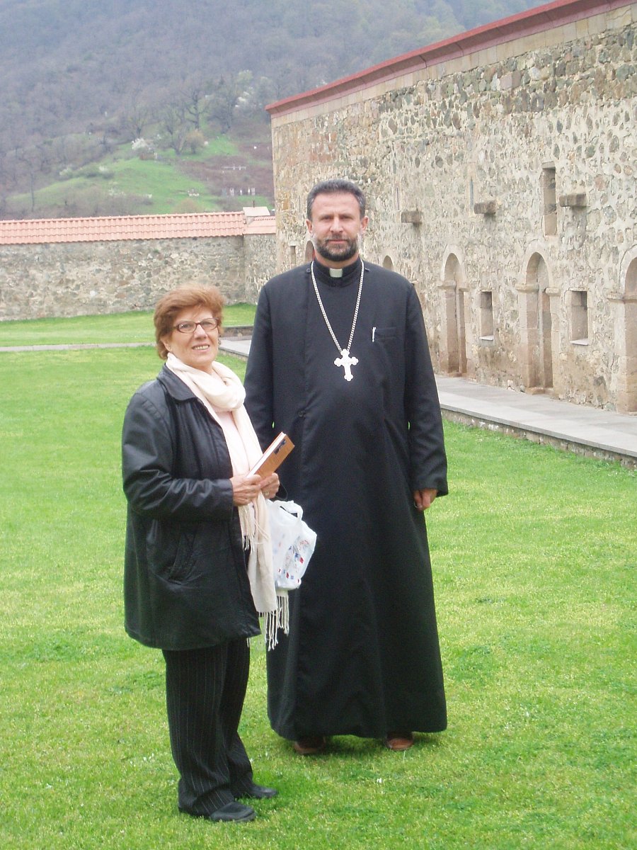 Následující den jsme vyrazili na výlet do nejznámějšího kláštera v Náhorním Karabachu. Klášter Gandzasar vypadá jako mnoho jiných pravoslavných klášterů v Arménii, ale liší se svými mnichy. Byl nám představen mnich vysoké postavy, který bojoval ve válce za nezávislost. Madelaine jím byla nadšená, považovala ho za národního hrdinu. Arméni podobné věci myslí zcela vážně a nelze se jim příliš divit – v letech 1915 – 1918 bylo osmanskými Turky vyvražděno 1,5 milionu Arménů. Rovněž území Arménie, které původně zahrnovalo i východní část dnešního Turecka, se v průběhu historie scvrklo do dnešní podoby. Je třeba vědět, že Ázerbájdžánci jsou v podstatě Turci, mluví velmi podobným jazykem a Turci je považují za své bratry.