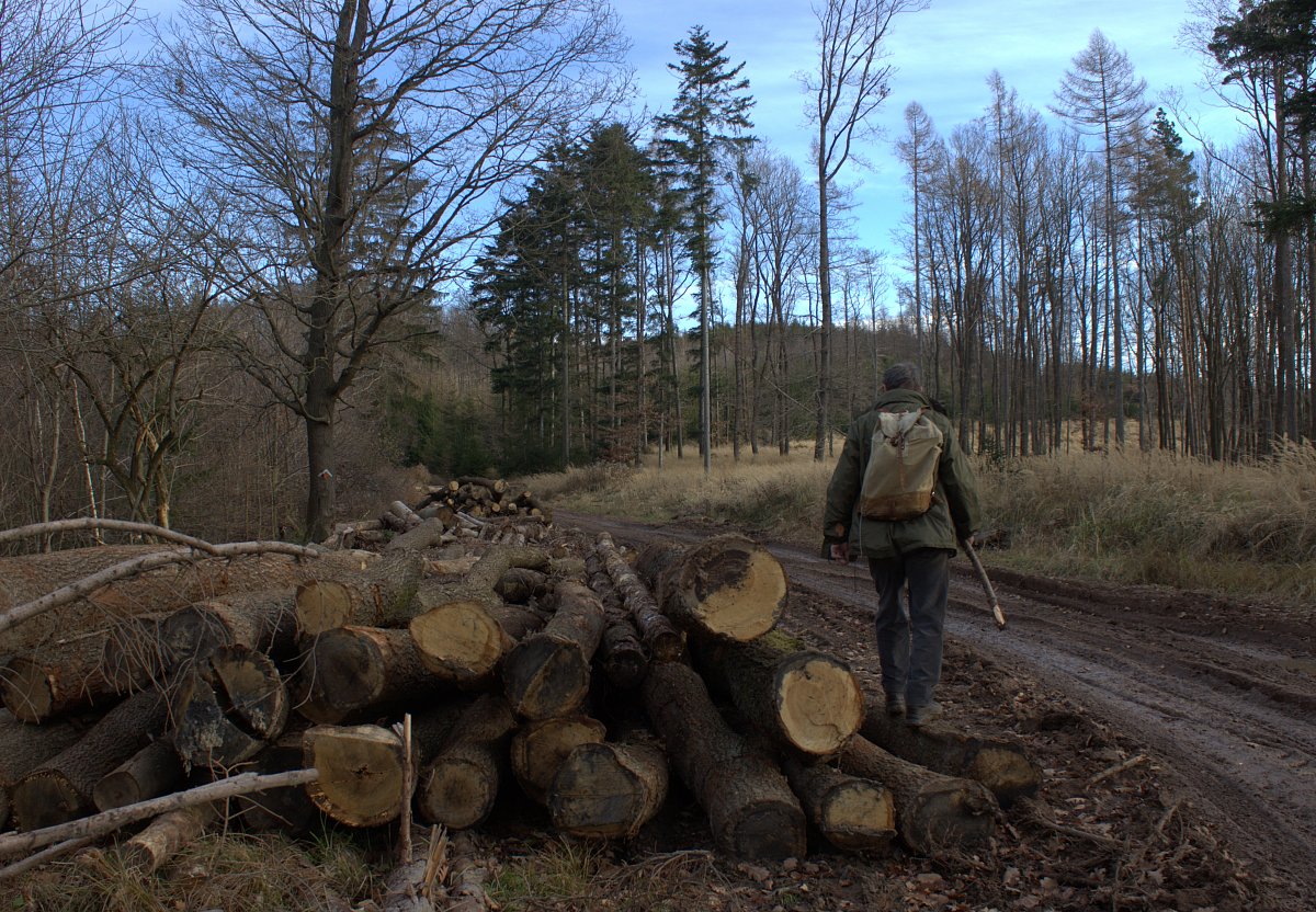 Na zpáteční cestu jsme se vydali přes nejvyšší kopec Lysinu. Na jejím vrcholu se nám otevřely pohledy do okolní krajiny. Dokonce jsem viděli i na Sv. Hostýn. Když tam ještě stály husté smrkové porosty, tak to bylo nemyslitelné. Místo nich jsme procházeli velkými vytěženými plochami, na kterých se tyčily jen skupiny listnáčů - buků a dubů. Trochu níže čekalo ještě na pokácení a zpracování hodně uschlých smrků.