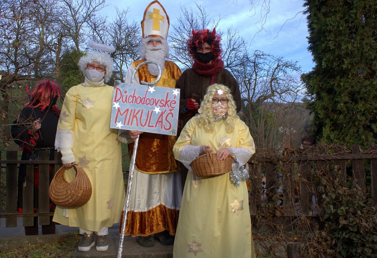 Původní procházka, plánovaná na dvě hodiny, se protáhla na tři. Ušli jsme celkem asi deset kilometrů, a pořádně nám při tom vyhládlo. Doma na nás čekalo vepřo, knedlo, zelo a vychlazené pivo. Když jsme pak u biatlonu popíjeli kafíčko a konzumovali dezert, někdo zazvonil. Koho to k nám čerti nesou? Byli to čerti, anděl a Mikuláš, kteří nám přinesli mikulášský balíček. Dostali jsme jej, stejně jako všichni naši starší spoluobčané v naší obci. Prý za to, že toho covida tak dobře snášíme a chováme se zodpovědně. Bylo to moc příjemné překvapení.