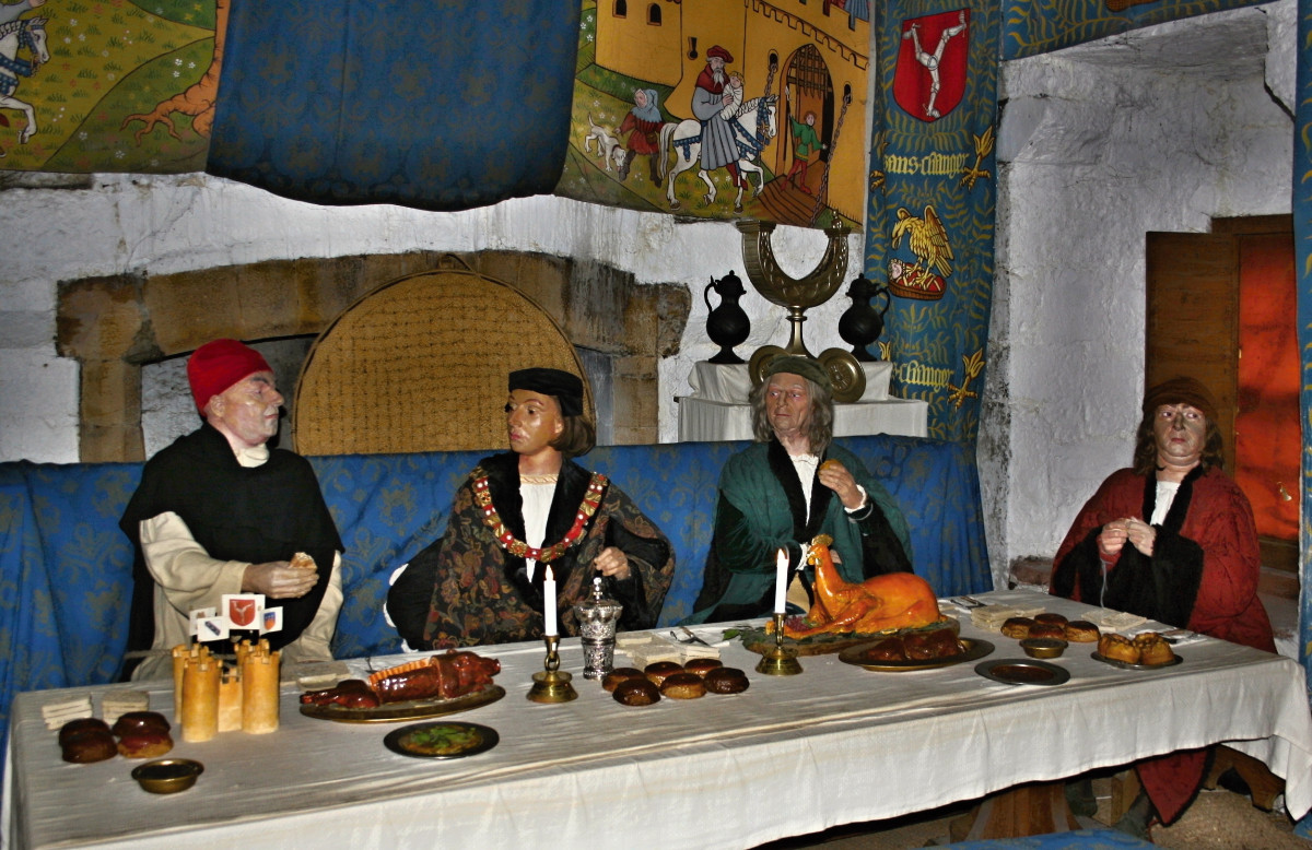 Centru města vévodí zachovalý středověký hrad Rushen, původně postavený pro vikinské vládce. Prolezli jsme jej skoro celý. Pěkné je vnitřní vybavení historickým nábytkem, gobelíny a obrazy a lze spatřit i zázemí - kuchyni. I tady je vidět, že si na britských ostrovech potrpí na figuríny, které expozici pěkně oživují. V audienčním sále trůní lord Thomas, v jídelně ze 17. století rozpráví Lord of Mann (ten s řetězem) s biskupem a dalšími potentáty, služebník jim nese k obědu páva a málem se přitom natáhne… Prostě bylo na co koukat.