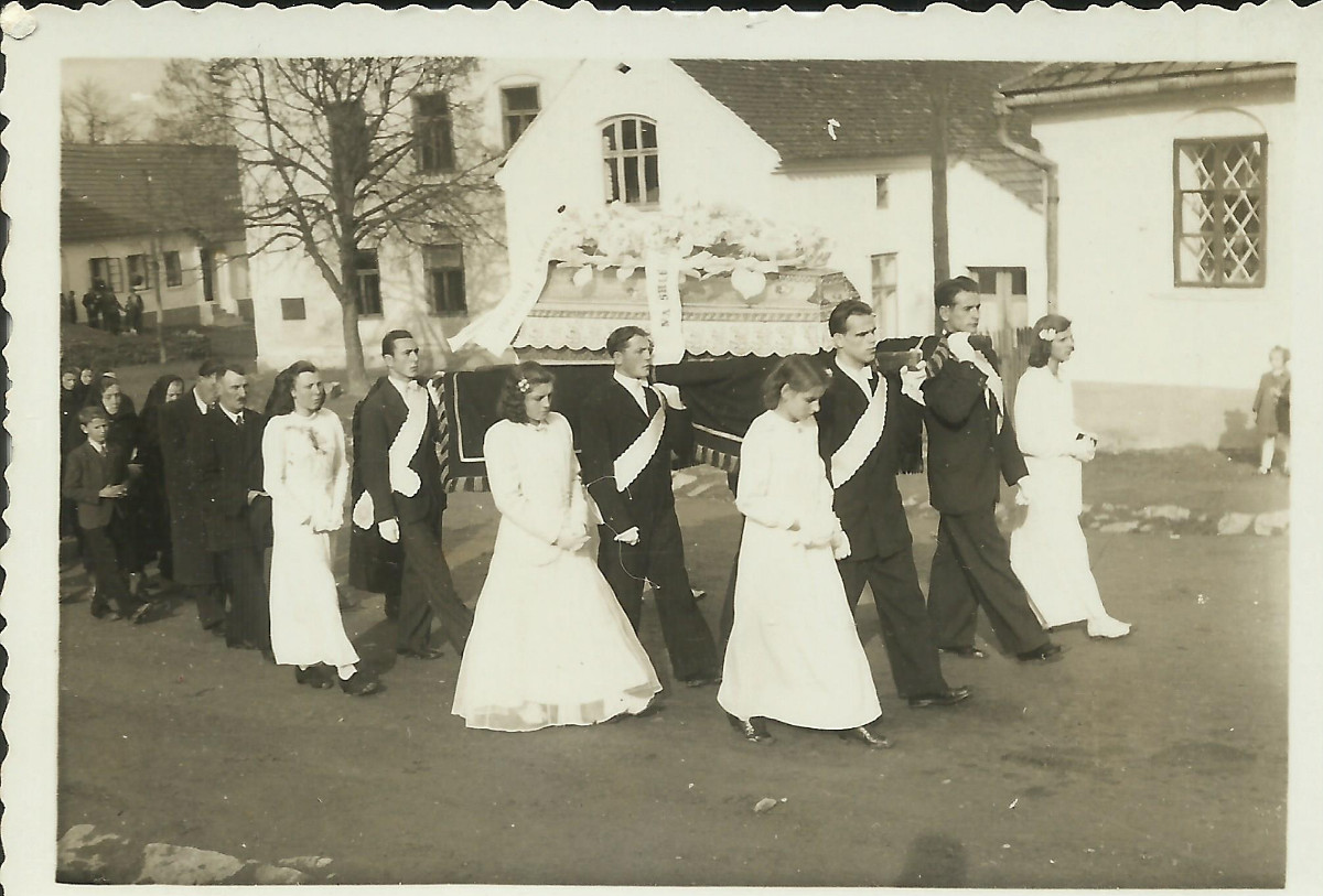 V roce 1945 ve Svatodušní svátky šla moje teta s procesím do vzdálených Jaroměřic na pouť. Bylo velmi teplé počasí, takže šla v bílých šatech, tam poutníci vždy přespávali a druhý den se pěšky vraceli domů. Ovšem velmi se změnilo počasí, začal padat sníh, moje teta velmi nachladla a dostala zápal plic, který pro nedostatek vhodných léků se změnil na těžkou tuberkulozu - v té době těžko vyléčitelnou.