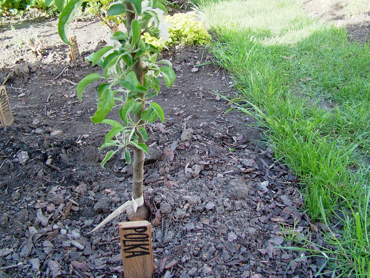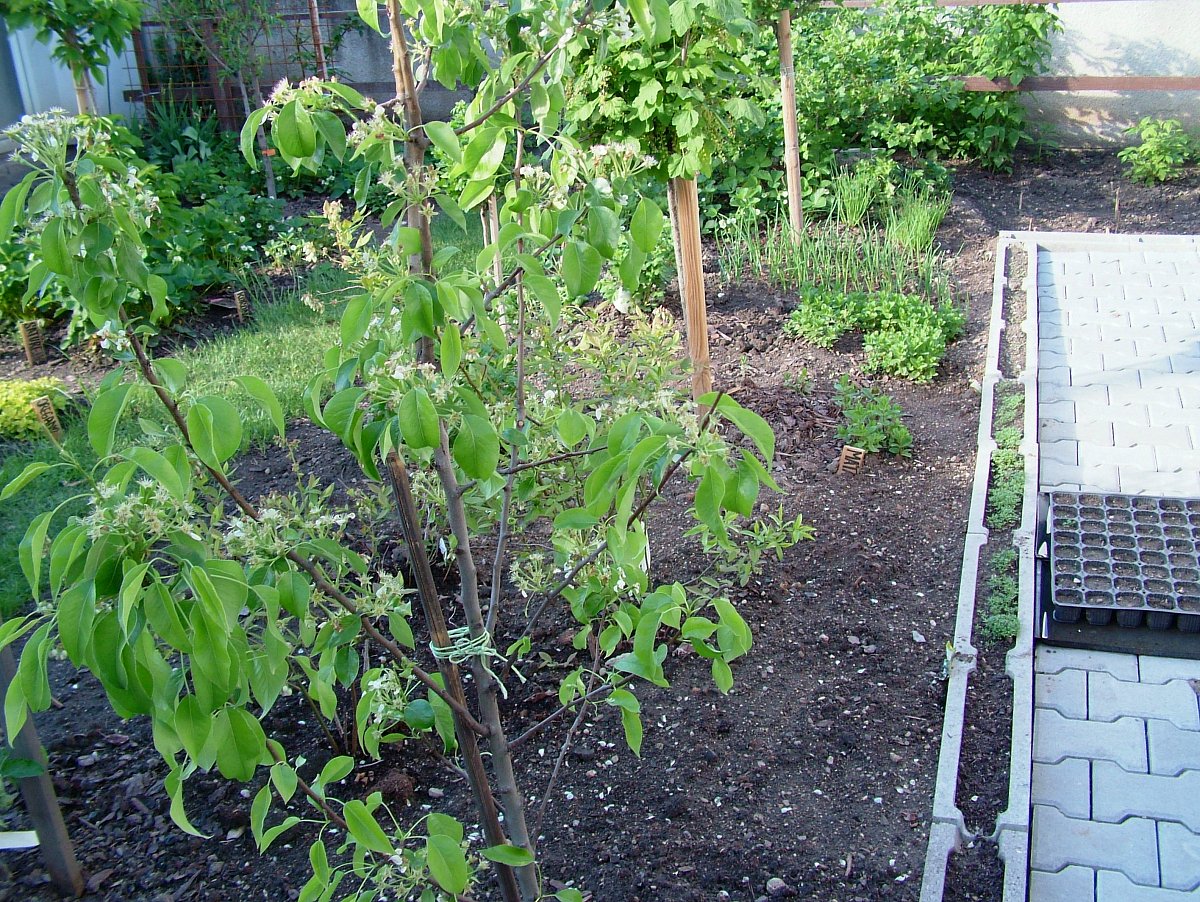 V sousedství se nachází malá zahrádka. Rozměry má tak 5 x 5m, ale je úžasná - ovocná, bylinková a zeleninová. Rostou tam různé druhy ovocných stromků, většinou sloupovité formy vhodné do malých zahrádek, proto tam lze spatřit hrušeň, třešeň, jabloně, švestku i broskvoň. U stromků jsou cedulky s názvy odrůd.