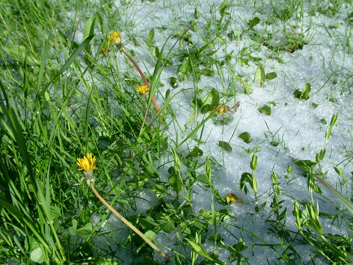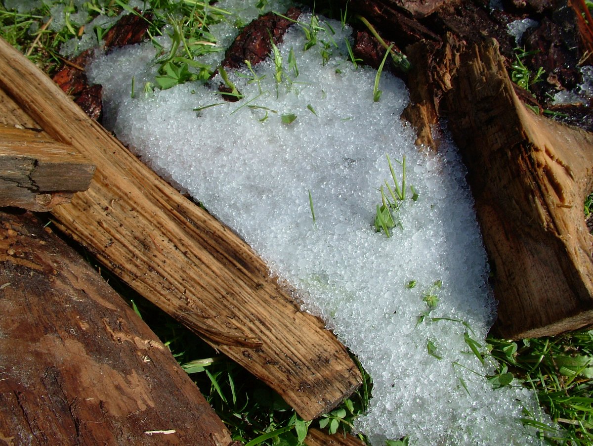 Ráno bylo krásné, sice větrné, ale jinak klidné a skoro stejné jako jindy. Jen hodně studené bylo. Za bílou střechou sousedovy chalupy vysvítalo sluníčko, přes bílou pěšinu přehopkal zajíc. Srnky vycházely na pastvu po své louce. Nevadilo jim, že bylo vše mokré a zasypané kroupami. Pampelišky se ještě nechtěly otvírat, tráva místy ležela. Včelkám nahoře pod lesíkem se zatím nechtělo do práce.