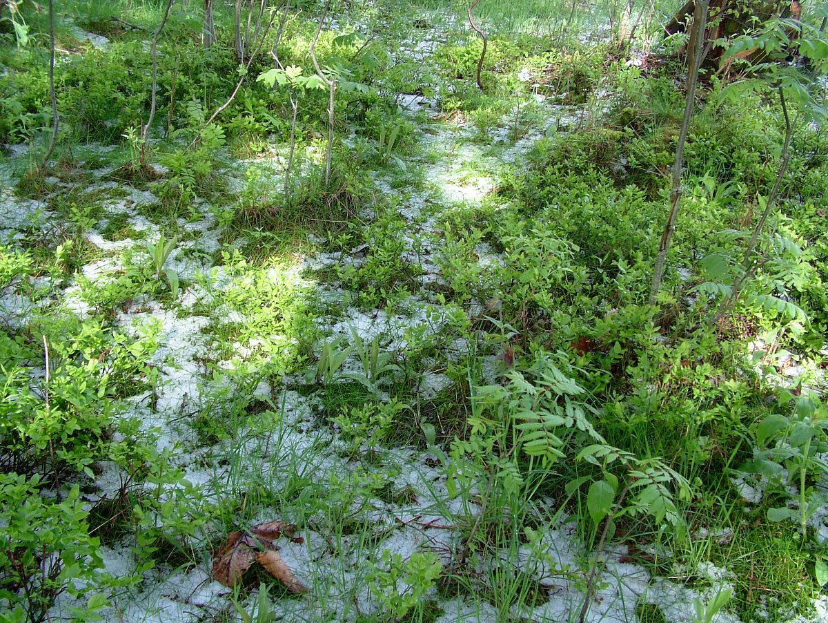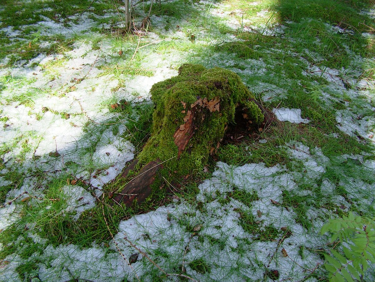 Vše proběhlo velmi rychle. Nebe ztmavlo úplně, přihnal se prudký liják a blesky. Kroupy začaly bušit do všeho kolem. Břízky se ohýbaly ve větru, les hučel. Najednou bylo všude bílo od krup jako po chumelenici. Chvíli to trvalo. Pak už jen pár blesků, bouřka se přehnala. Večer ustal i déšť, zůstal jen vítr. Vykoukl měsíc a nastala nádherná úplňková noc. Jak to asi bude ráno venku vypadat, říkala jsem si.