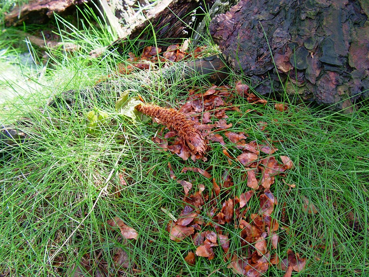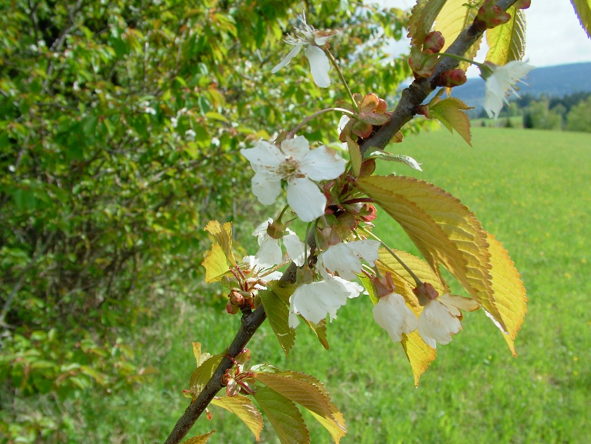 O kus dál, u protějšího lesa, se pásl srneček. Pozorovali jsme se přes louku. Zvedal hlavu proti větru, větřil. Abych ho nerušila, prošla jsem známým lesíkem. Ten, už trochu prosvětlený sluncem, vstával. Ptáci tu vyzpěvovali jako vždycky. Po jeho okrajích se ve větru pohupovaly dokvítající třešně. Vítr jim odnášel bílé lístky, až ozdobily pařez. Borůvčí již nakvetlé bylo obklopené kroupami, stejně tak i zbytky okousaných šišek po veverčí hostině. Sluníčko zasvítilo, v houštině se objevily ještě slabé, rozkvétající konvalinky.