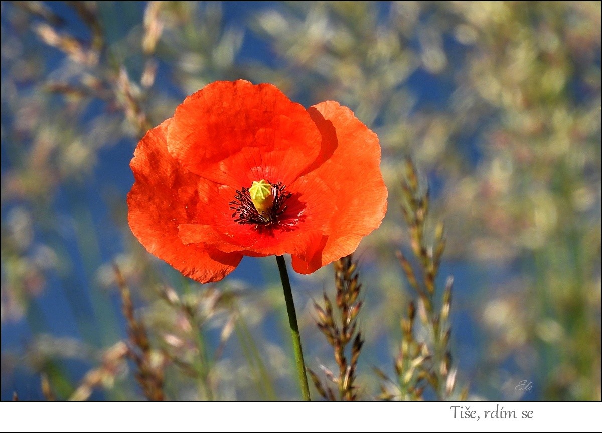 Zavřete oči a představte si červenou barvu a její bohatou škálu odstínů. V tomto nádherném měsíci červnu, kdy jaro přechází v léto, najdete spoustu záběrů, kde bude prim hrát právě červená barva. Ranní rozbřesk, rozkvetlé pivoňky, trpaslík s červenou čepicí, čáp s červeným zobákem, zapomenutý kbelík. A vlčí máky. Ano, červen mi symbolizují právě rozkvetlé rudé máky vlčí.