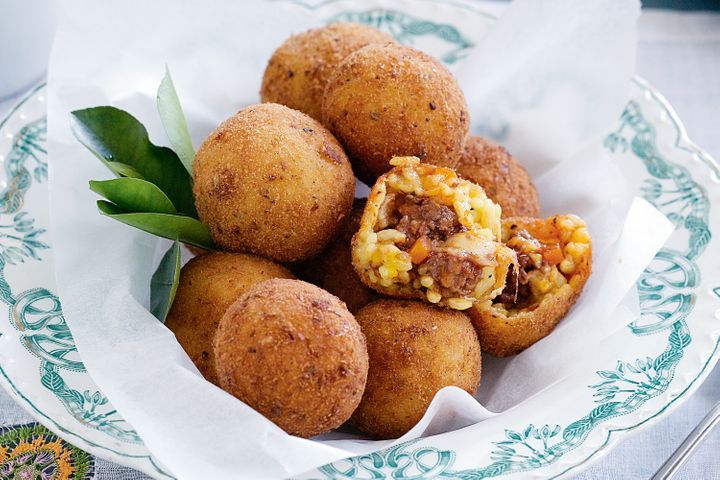 Tohle na český stůl ještě moc neproniklo – ve strouhance obalené a do zlatova osmažené koule připravované z rýže a plněné nejčastěji ragù a nakrájenou mozzarellou nebo sýrem či šunkou. Rýže je trochu rozvařená a ochucená šafránem. Ragú se vaří s rajčatovou štávou, červeným vínem a hráškem.