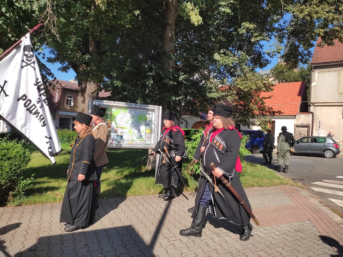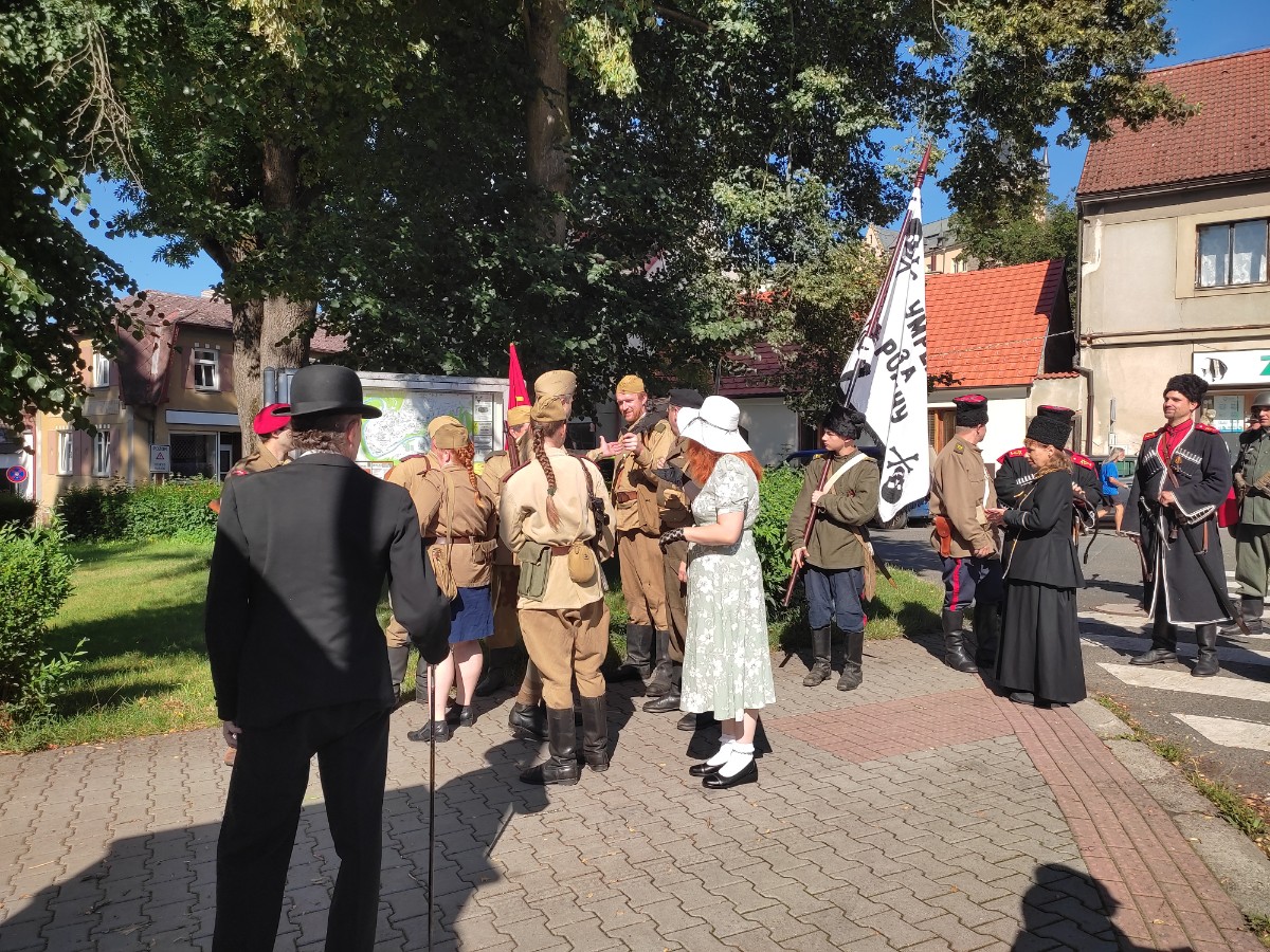 Již v deset hodin se seřadilo několik různě uniformovaných vojínů, dámy v dobových šatech, většinou s paraplíčkem, žongler Filip a vlajkonoši, Za zvuků dobové hudby prošel průvod městem až do zámecké zahrady.(U vstupu, při placení vstupného, jsme se prokázali dokladem o očkování - kdo neměl, měl možnost se nechat zdarma otestovat ve stanu.) Stany s různými dobrotami, výrobky z vosku – prostě trhy se zbožím domácí výroby.