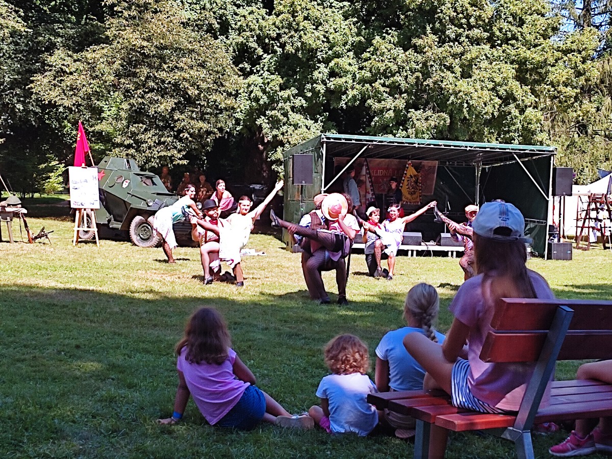 Moderátor Zdeněk Vrba zahájil slavnost představením hostů a program začal. Dobovou hudbu střídaly taneční skupinky, a to ne ledajaké. Švejk Šraml – oficírská kapela se Švejkem coby moderátorem a zpěvákem v jedné osobě. TŘEHUSK - TŘEbaňská Hudební Skupina ,MARIANE - Soubor historického tance Mariane s vedoucí paní Kasnerovou .Ta sama tyto šaty šije. IRIS – tyhle tanečnice nám ukázaly swing či charleston, a to denní i večerní šaty a tance .