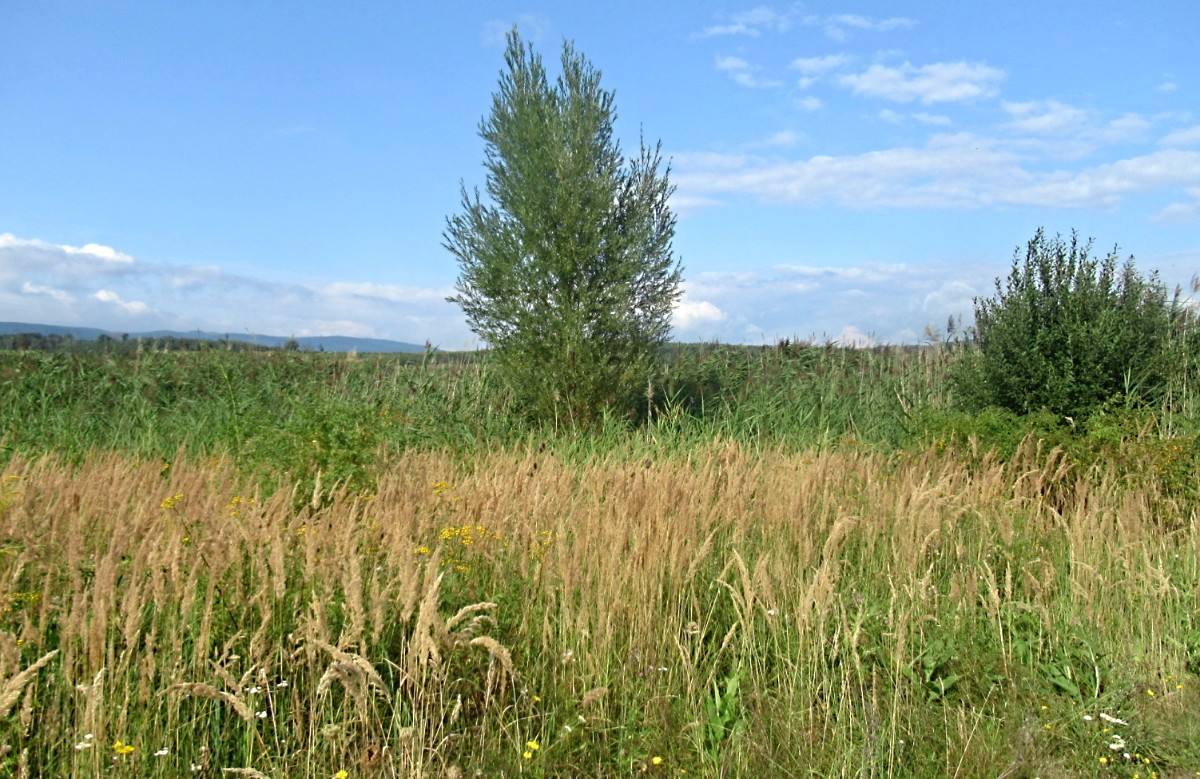 Tentokrát jsme to vzali přes obec Roudníky. Sešli jsme lesíkem na silnici a už jsme viděli naši oblíbenou Miladu. Příroda má tu možnost a potřebu se neustále proměňovat, takže na rozdíl od jarní procházky to nyní bylo všechno fakt zarostlé. Zřejmě tím, jak bylo pořád mokro a deštivo, všechny stráně kolem jezera jsou porostlé hustými stromy, tráva na loukách je do pasu a rákosí? Rákosí je všude, kam se podíváš, šli jsme po cestě směrem k Trmicím a až na malé výjimky jsme neviděli vodu, jen slyšeli.