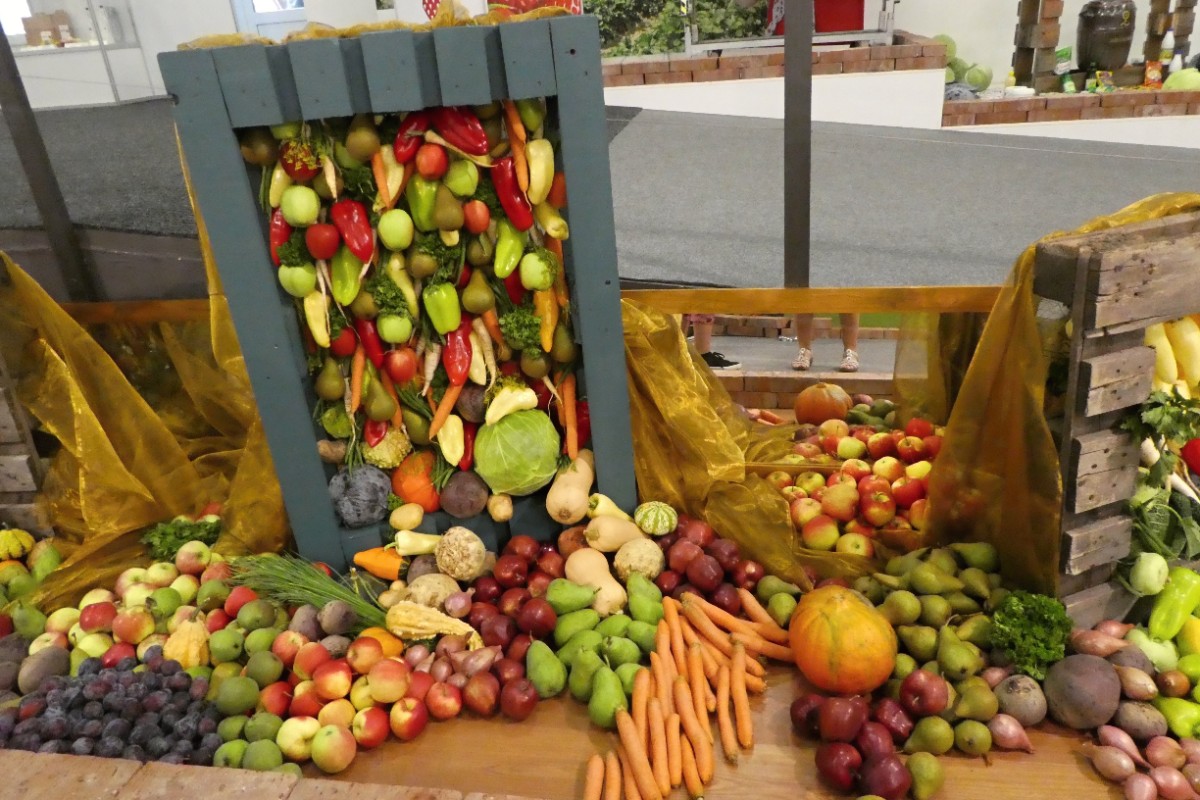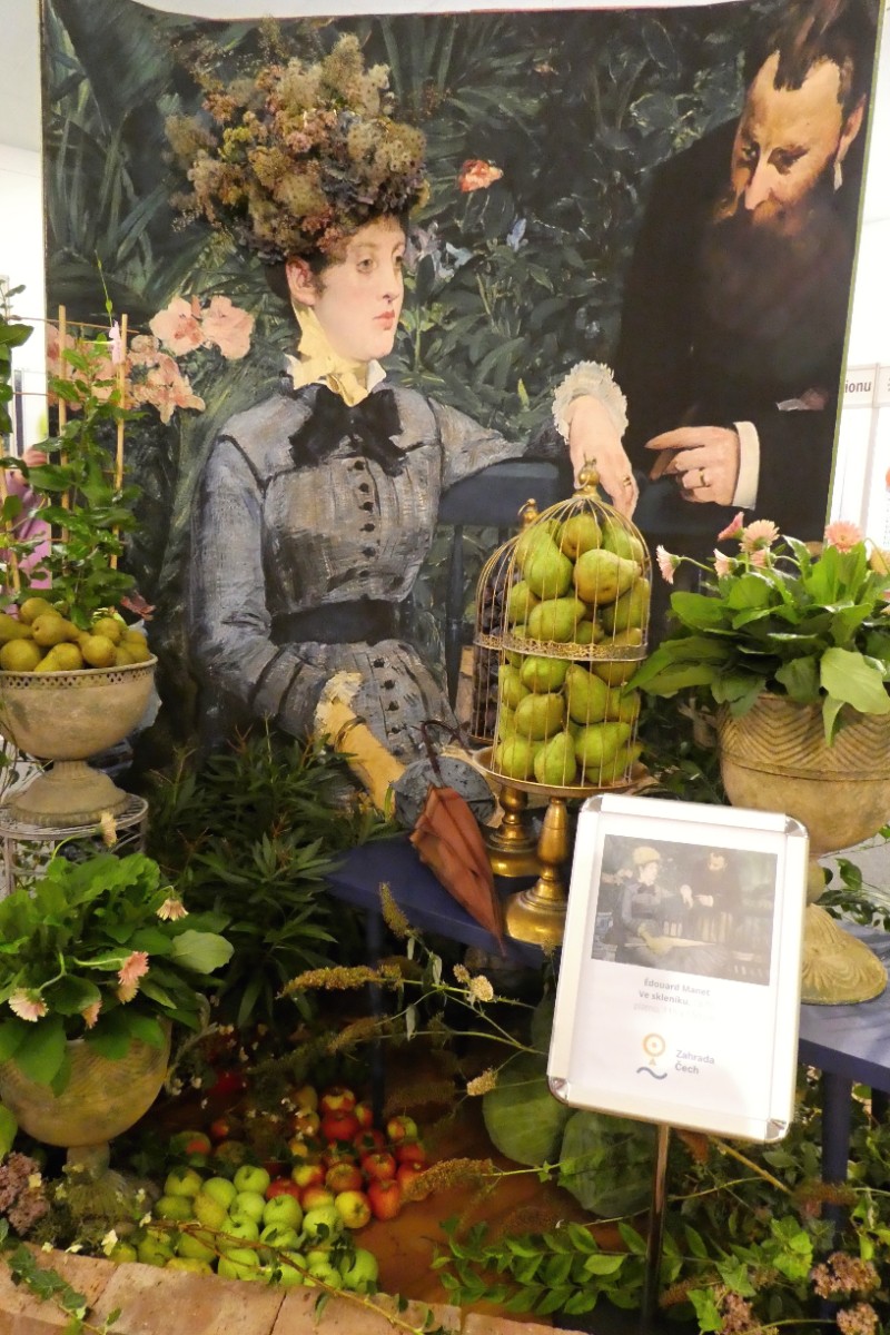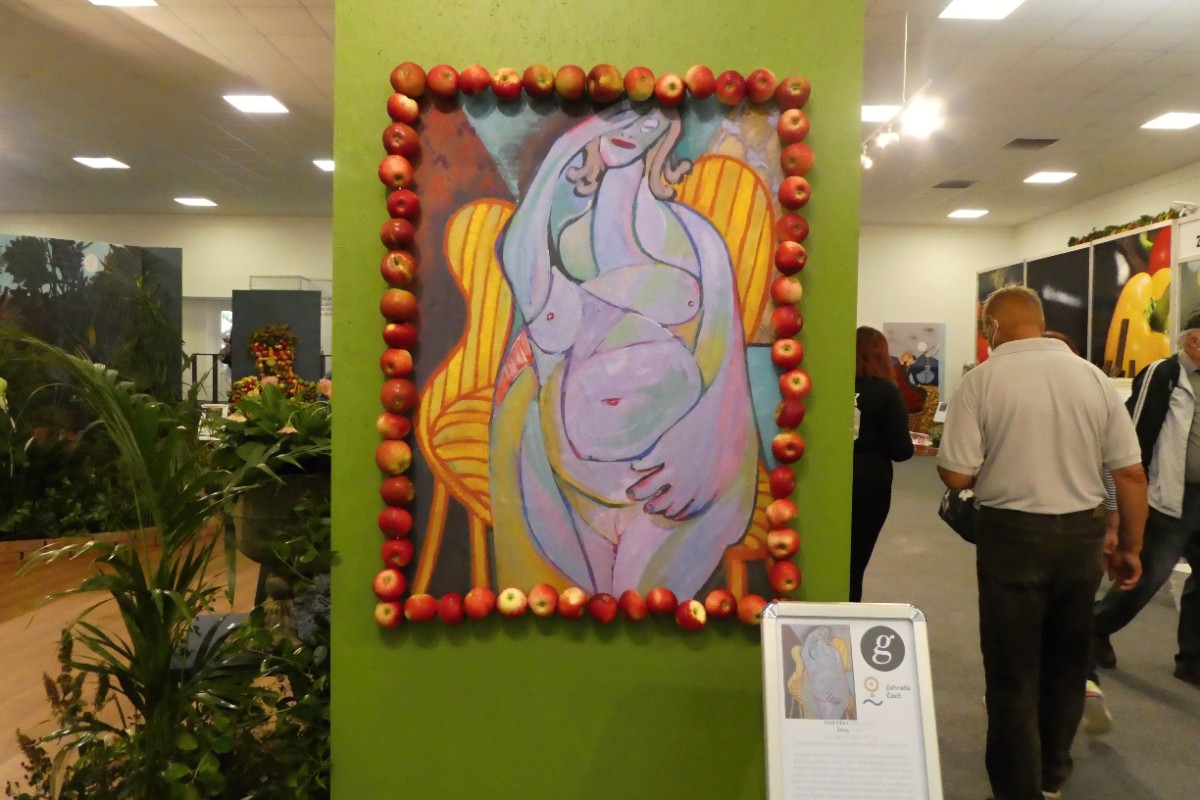Vydali jsme se v sobotu do Litoměřic, abychom se opět pokochali  květinami, stromky, novými odrůdami a vším, co takový veletrh nabízí. Včetně dobrého jídla a pití. No, co budu povídat, pršelo, jen se lilo. Po poledni už jen poprchávalo a odpoledne proběhlo poměrně dobře, za malé účasti dešťových kapek. I tak se Zahrada Čech opět zaskvěla v plné kráse. Bylo se na co dívat. Mě upoutal pavilon hned u hlavního vchodu. Reprodukce obrazů známých starych mistrů lemovaly rámy z jablíček či okolní výstavka krásného ovoce i zeleniny. Opravdu zdařilé. Na pódiu Roman Vojtek zpíval z plných plic a mladí čekali na autogram. Moje vnučka samozřejmě také. I burčák byl a tradiční klobása. Dokonce, koho bolely nohy, či záda, mohl se nechat zdarma namasírovat  na přístrojích, které jste si mohli koupit, když na místě, tak se slevou. Dost vysoká láce. Hezké to bylo a  každý si přijde na své.
