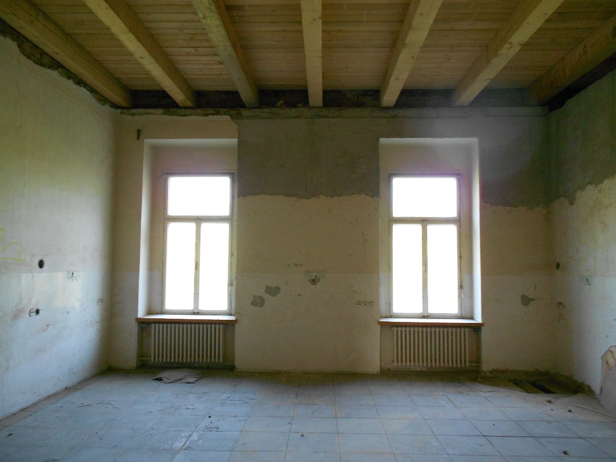 Od syna vím, že zámek patří obci, a moc mě zajímá, jak vypadá vevnitř. Dámy z občerstvení ochotně volají paní starostku a skupina asi deseti zájemců se vrhá na obhlídku interiérů. Bohužel zámek je uvnitř ještě v horším stavu, než se zdálo z venčí.
