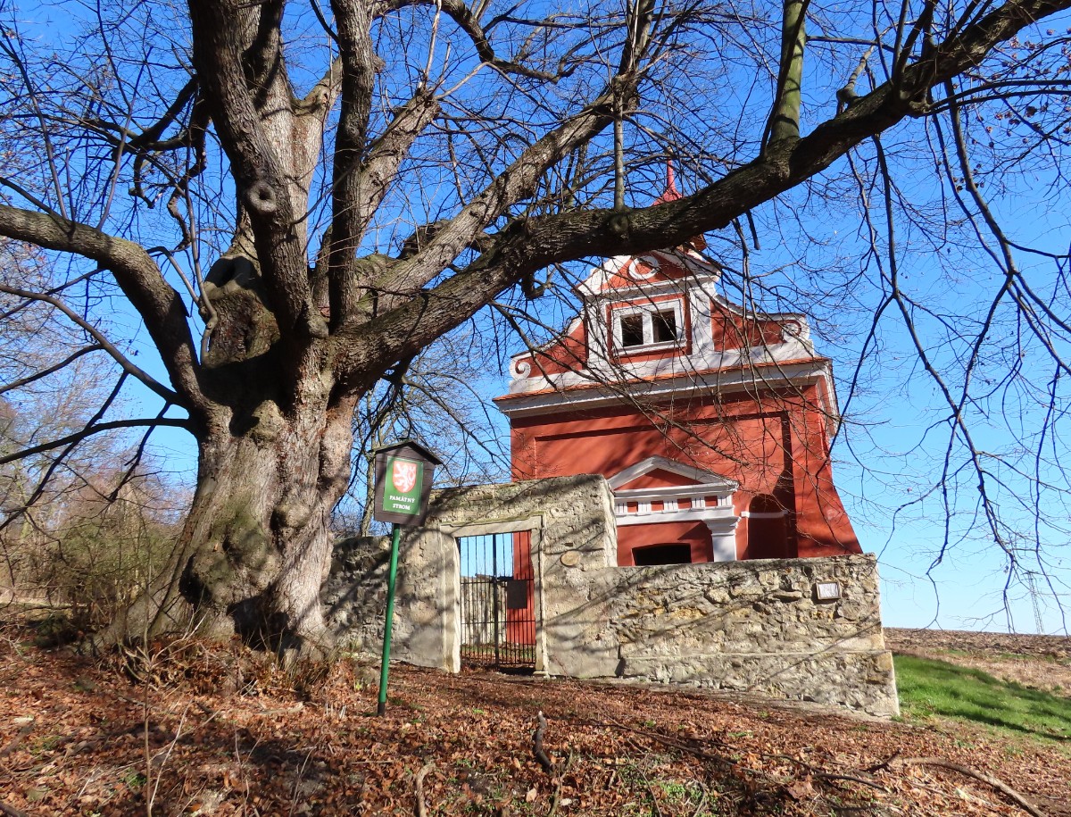 Následující a nejdelší zastávka byla u Číčova, mého oblíbeného kopce. Na jeho vrchol jsem si vyběhla už mnohokrát a ani tentokrát určitě ne naposledy. Brzy se sem vypravím znovu, a to až rozkvetou zdejší koniklece. Ty zatím spí a není po nich ani stopy. Zdobí ho jen jako zlaté vlasy učesaný suchý kavyl. Den jako malovaný nabízel kouzelné výhledy do předjarního Středohoří. Z Ćíčova je na obzoru vidět Říp i magický Bořeň, největší povrchový znělcový skalní útvar ve střední Evropě. Od Řípu jsme přijeli, Bořeň je jedním z bodů na mapě výletu. Ještě před ním jsme se zastavili ve vesničce Sinutec u krásně opravené barokní kaple sv. Víta s památnou lípou.