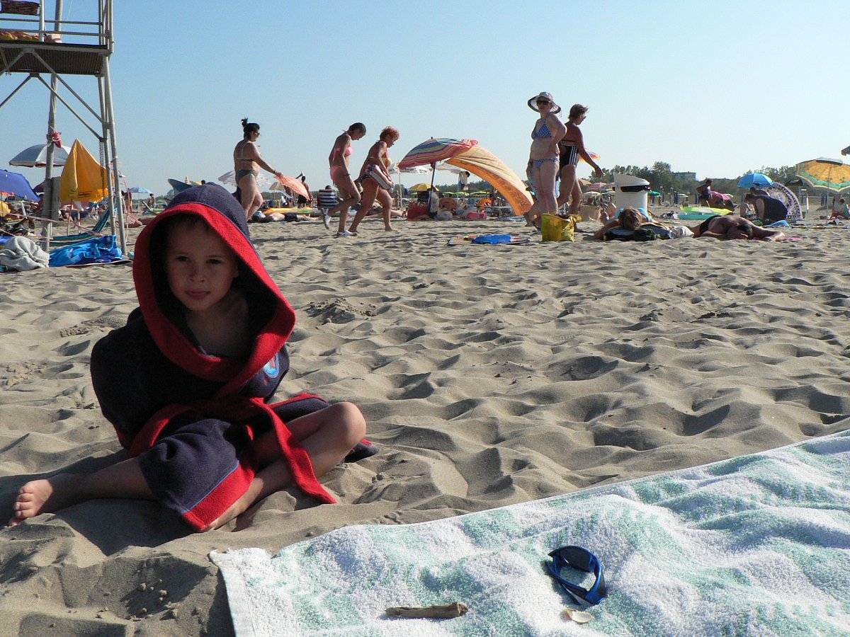Protože se nám dovolená s vnoučaty u moře v Itálii moc líbila, rozhodli jsme se, že si to ještě jednou zopakujeme. Tentokrát jsme k Zuzce a Matějovi přibrali také malého Andreje. Ubytováni jsme byli v kempu Marre e Pineta u Jaderského moře v Benátském zálivu, jižněji od Caorle. Byla nám přidělena malá chatka se dvěma pokojíky a kuchyňkou, ve které jsem připravovala obědy, když se ostatní vyvalovali u moře. Já osobně chodím k moři jen ráno a nejraději si zaplavu před večerem, kdy už je na pláži jen pár lidí.