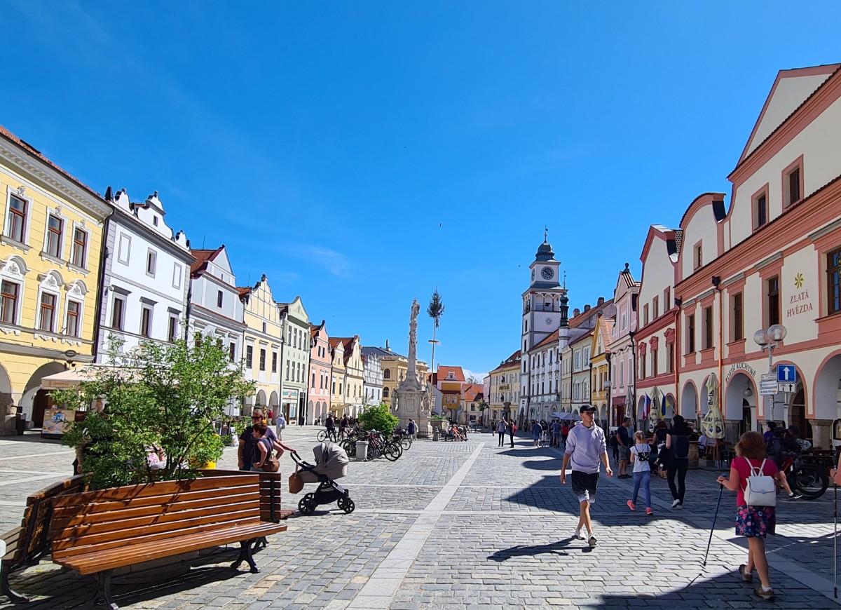Centrum náměstí jsem už jen proběhla. Jezdím sem několik let, autem i na kole, a proto mi zdejší atmosféra není cizí.  Teplé dny teprve začínají,  a tak příležitostí posedět v cukrárně nebo si už po několikáté připomenout třeboňskou historii, bude hodně. Pro ostatní jen ochutnání výstavy i náměstí.
