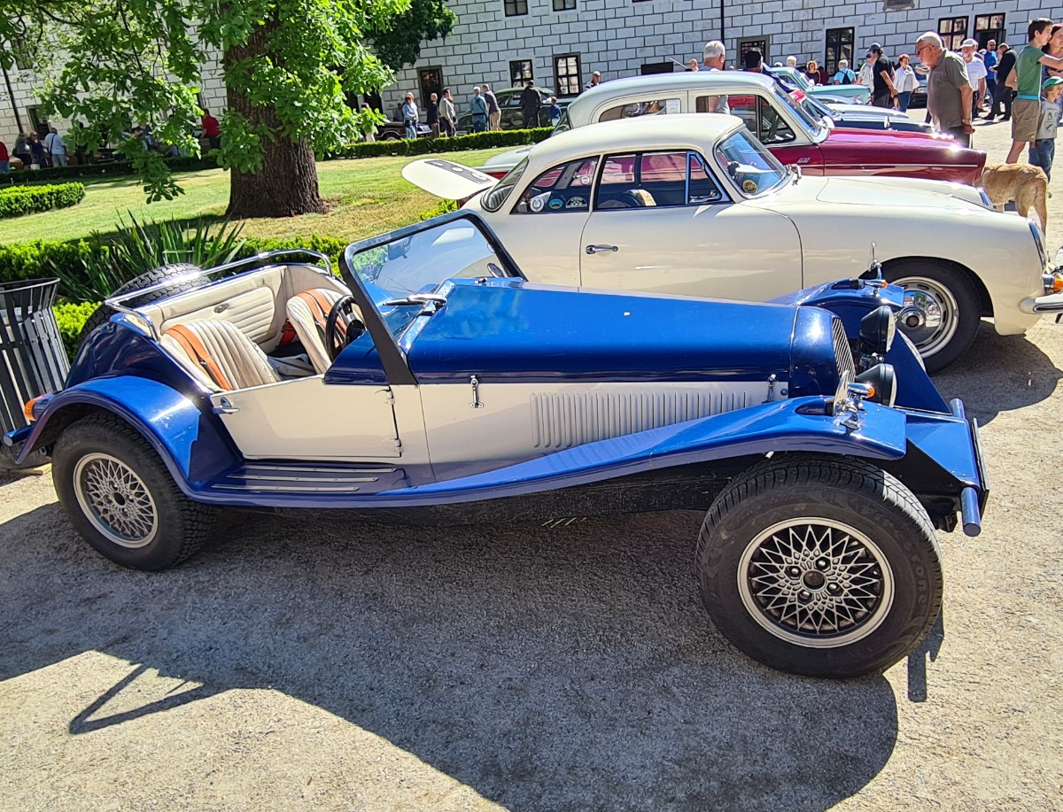 Když jsme si v sobotu 21.5.2022 dopoledne vyjeli na procházku do centra Třeboně, abychom se potěšili jarním parkem a pestrou paletou barev rozvitých květin, netušili jsme, že valnou část vyměřeného času strávíme na nádvoří místního zámku. Přilákalo nás množství promenádujících se lidí. Zjistili jsme, že jsme se připletli do akce Veteran car clubu při AMK Třeboň v AČR, který zde pořádal výstavu historických vozidel.
