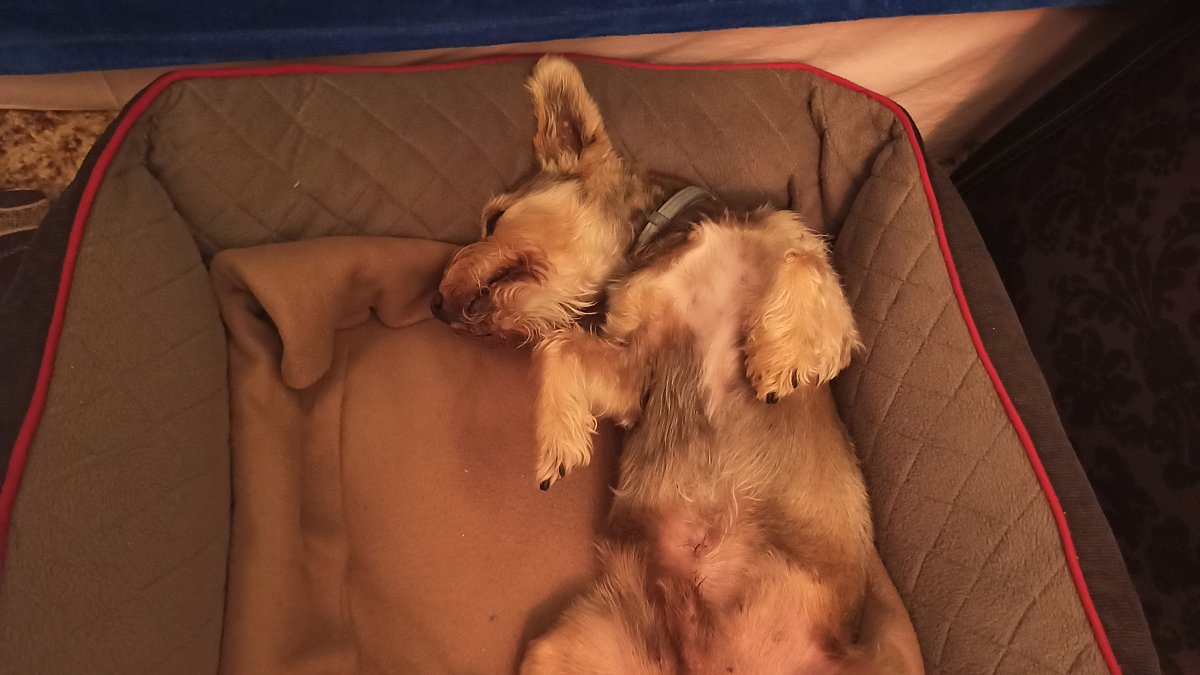 Ráno po probuzení vrtí ocáskem a když se stane, že mám sen a "zaspím", vystačí si se svými plyšáky. Věřte, že pro mne moc znamená, že hned po ránu má někdo radost, že tu jsem. Ostatně to štěstí je oboustranné.