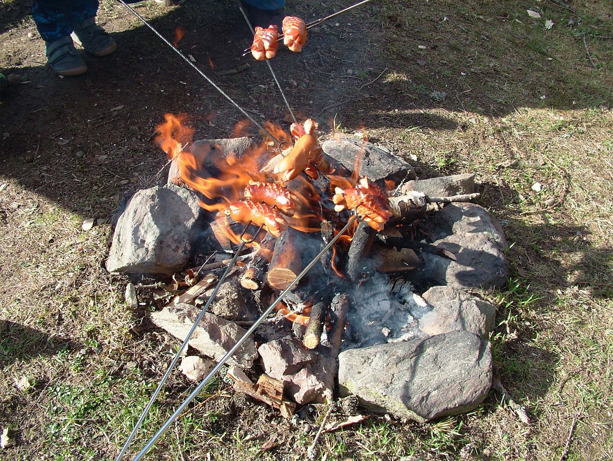 K večeru se vítr utišil. Sousedé skončili práci kolem chaty i u včeliček a pozvali nás k ohýnku. Byl první letošní. My pejskové jsme buřtíky nedostali, ale vůbec nám to nevadilo, tedy alespoň mně.