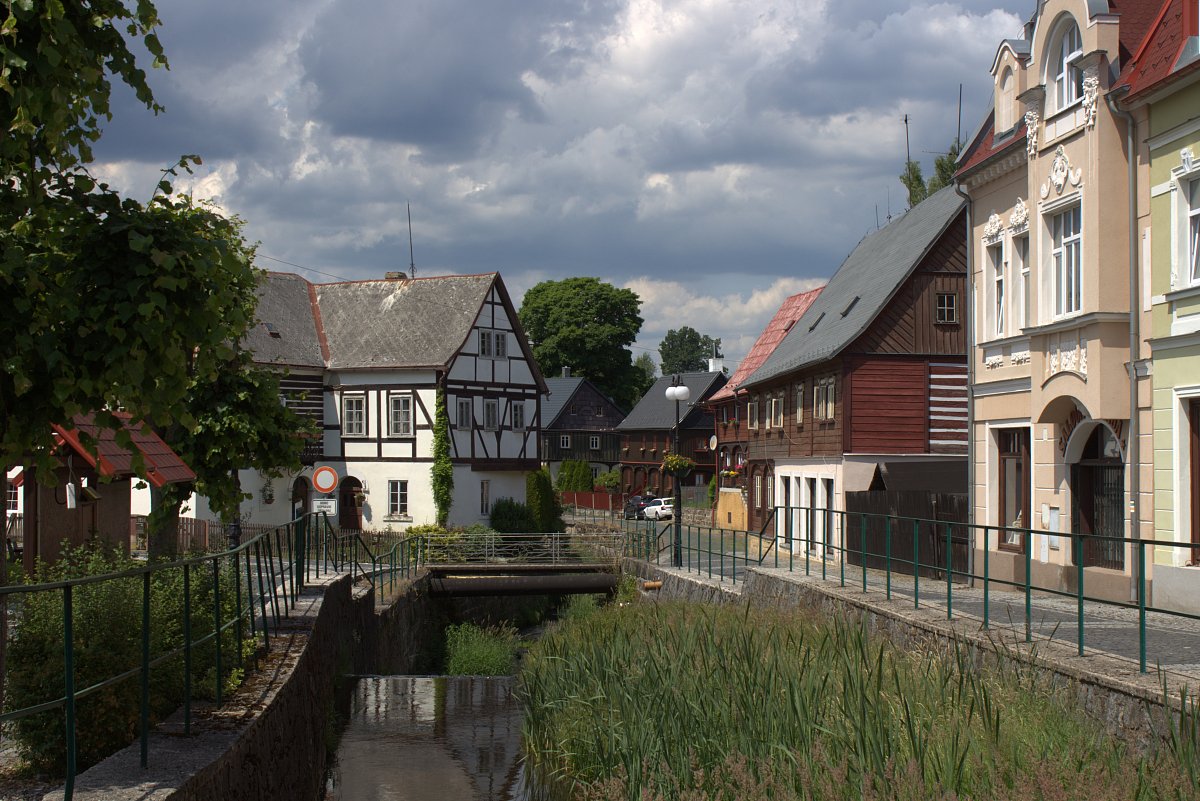 Vyjeli jsme autem z Děčína směrem na východ přes Markvartice, okolo naší oblíbené rozhedny Sokolí vrch, a po několika kilometrech přes Českou Kamenici. Naším cílem bylo ale městečko Chřibská, kde jsme pod svatým Jiřím zaparkovali auto. Chřibská leží v údolí říčky Chřibská Kamenice a rozhodně stojí za návštěvu. Na první pohled nás zaujala novogotická radnice, kostel sv. Jiří a hlavně krásně opravené hrázděné domy. Hned vedle IC, kde jsme si koupili vizitky do turistických deníčků, byla příjemná kavárna U Tadeáše. Před naším pěším pochodem, jsme si v zahrádce kavárny vypili výborné kapučíno.