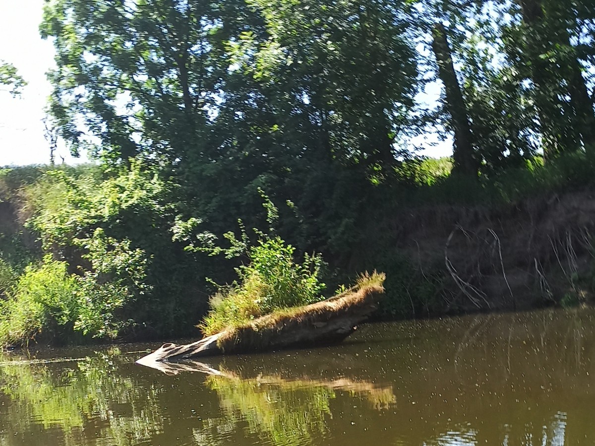 Pivečko jen zasyčelo. Po těle bylo fajnově, tudíž s úsměvy a letním nadšením jsme vypluli. Řeka byla klidná. Zvolna se vlnila nijak kopcovitou krajinou. Břehy byly neschůdné, často zarostlé bujarým porostem, anebo z téměř kolmých břehů se nad hladinu rozprostíraly větve vrb a jív. Řeka byla místy přeněžná, což způsobily ostrůvky bílých drobných kvítků, které šlahouny vodních rostlin nabízely slunečním paprskům.