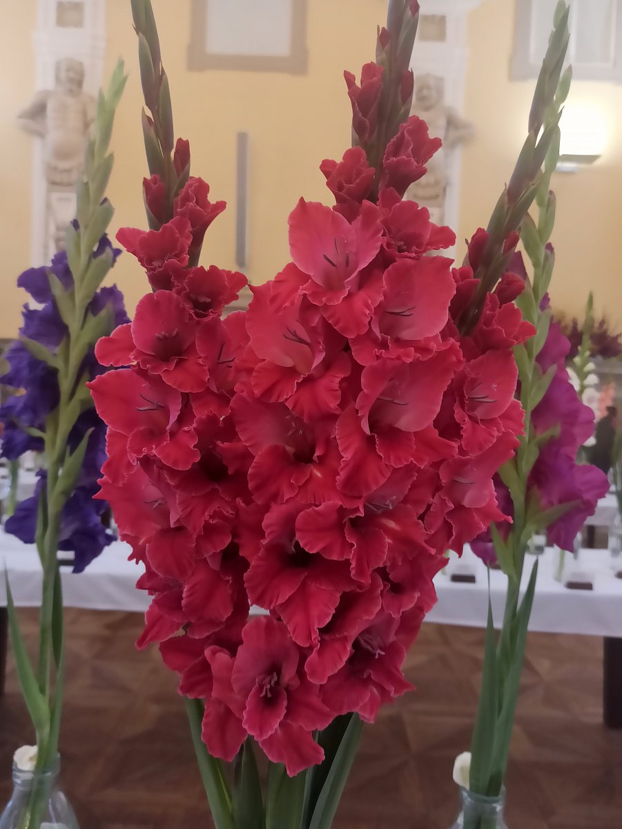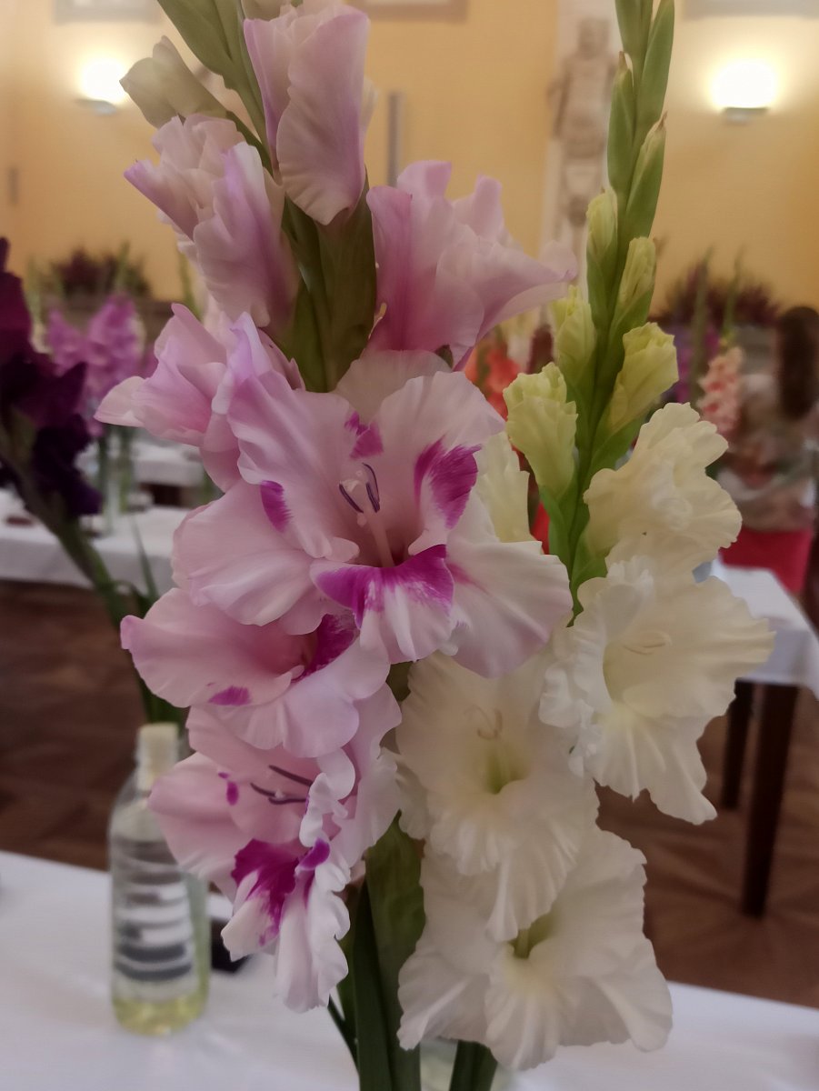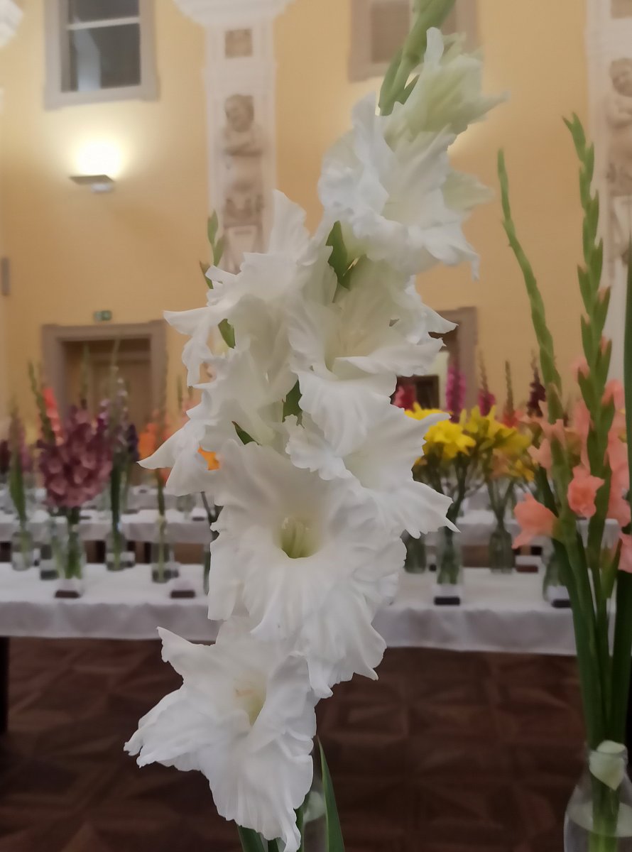 Když jsme přišli na výstavu nesměl mi na krku chybět můj fotografický přístroj Canon. Při prvním pohledu do sálu se mi zatajil dech a rychle jsem nastavila clonu a čas. První cvak a nic. Potom mi došlo, že baterka do foťáku je doma v nabíječce. Ještě, že vymysleli chytré mobily, a já Vám tak můžu zprostředkovat tu nádheru. Mečíky miluju.