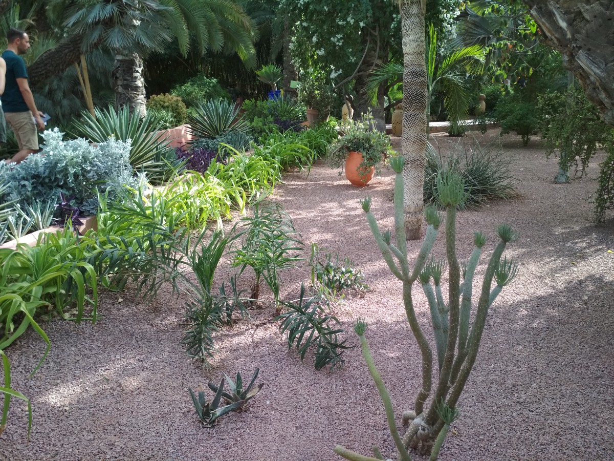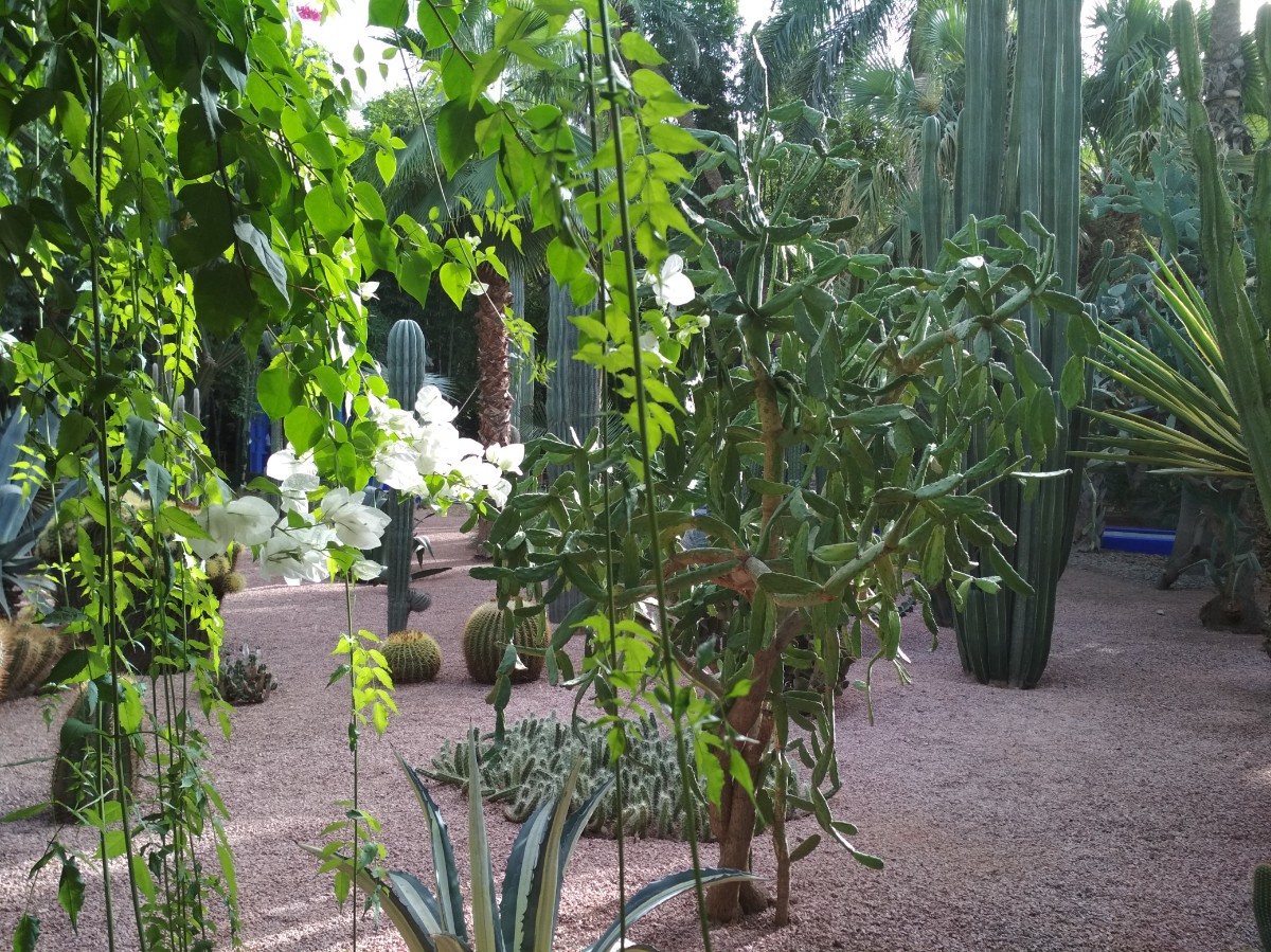 Je tu velké množství rostlin, palmy, kaktusy, monstery, ibišky, vodní rostliny,....Také si zde nechal postavit vilku ve stylu Art Decov jasně modré barvy. Po jeho úmrtí zahrada mnoho let chátrala. V roce 1980 ji koupil Yves Saint Laurent s přítelem a postupně ji zrekonstruovali a modrou vilu přeměnili v berberské muzeum. Zahrada byla nádherná, krásně udržovaná, spoustu rostlin kvetlo, všechny doplňky- vázy, altány, jezírka v krásně modré barvě. Spoustu zákoutí s lavičkami, na které jsem se posadila a unášela se nádherou zahrady, byl to balzám na duši.