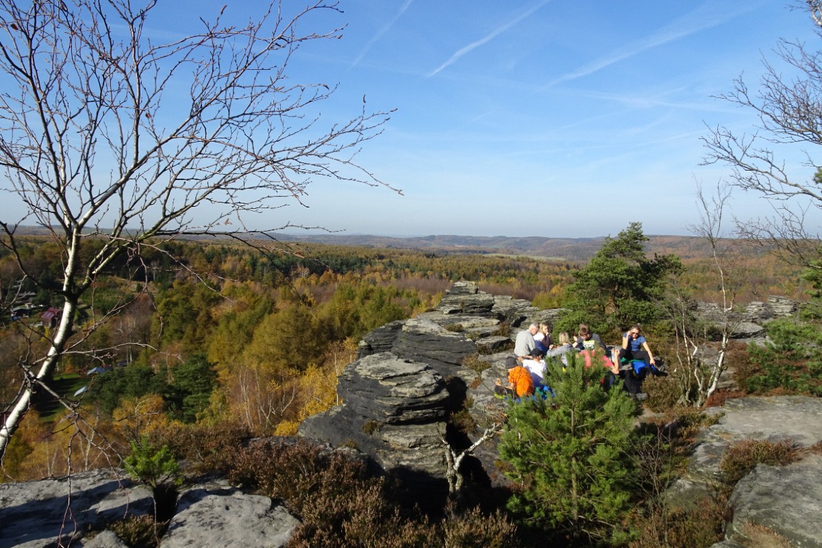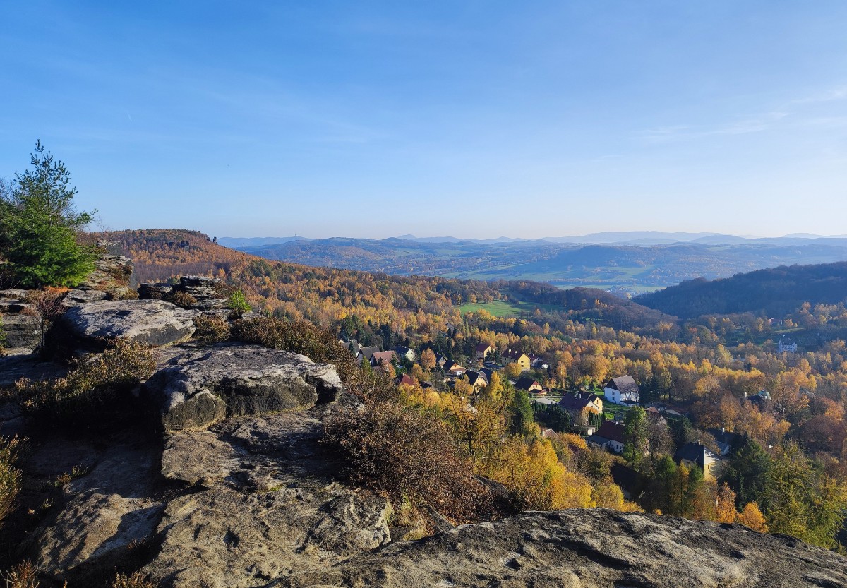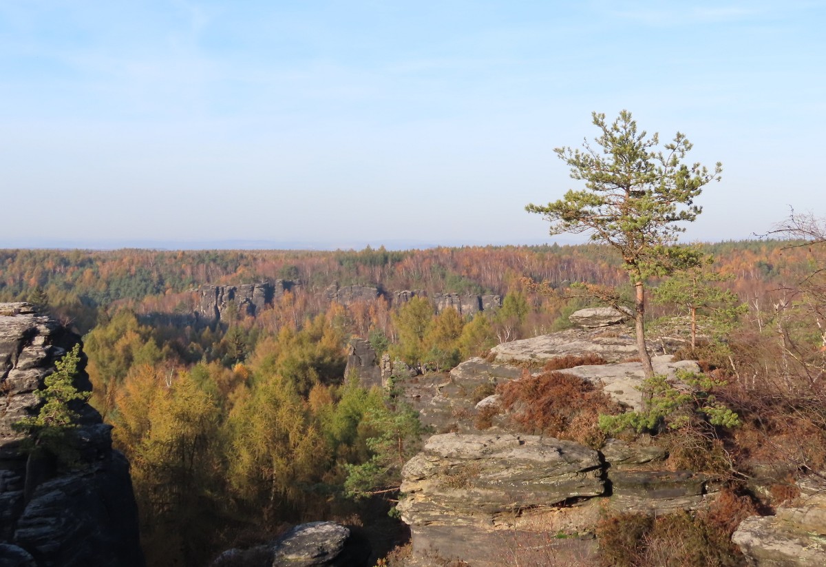 Výlet za sluníčkem jsem si náležitě užila. Vychutnávala jsem si sluneční lázeň a vůbec se mi nechtělo zpátky dolů. Vrátila jsem se totiž tam, odkud jsem přijela. Do husté šedivé mlhy. S kartou ve foťáku plnou barevné podzimní přírody a modrého nebe. Máte-li chuť, pojďte se se mnou skalami projít.
