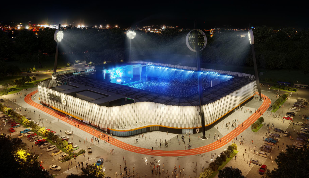 A takhle nějak by mohl vypadat nový fotbalový či spíše multifunkční stadion - Aréna Malšovice Zdroj: www.fchk.cz/