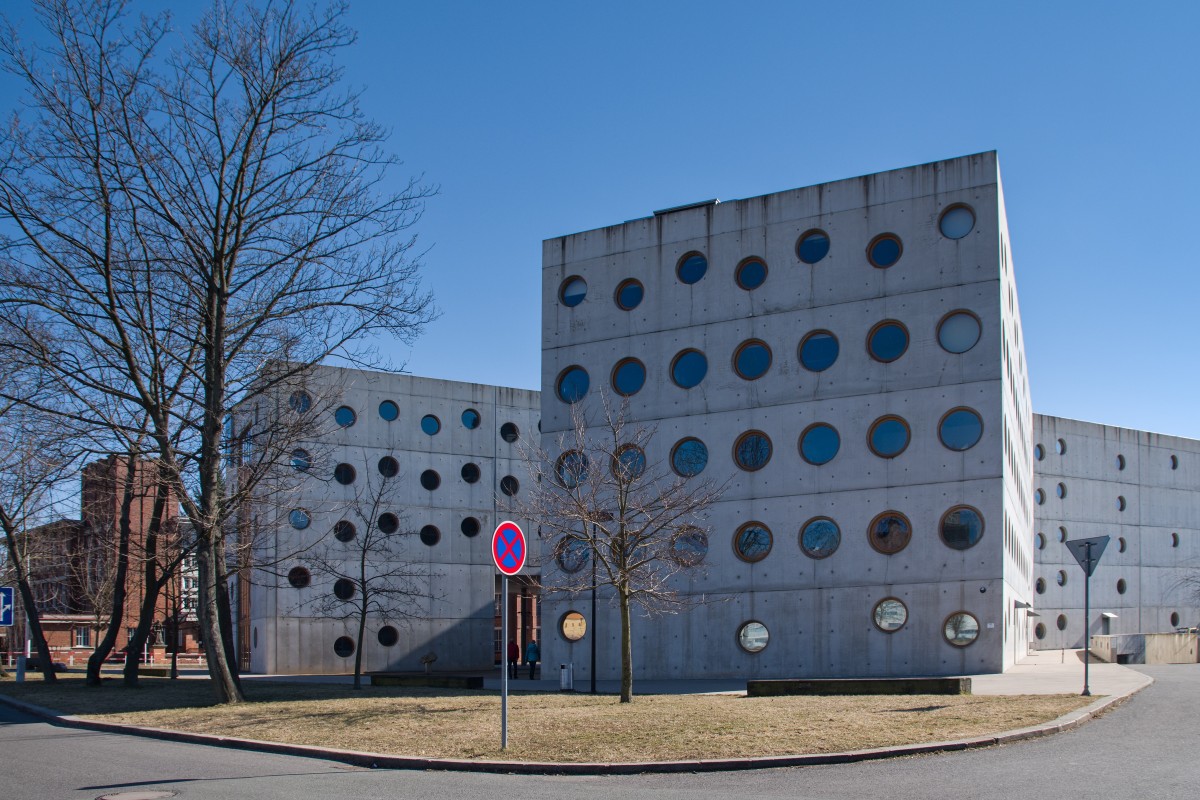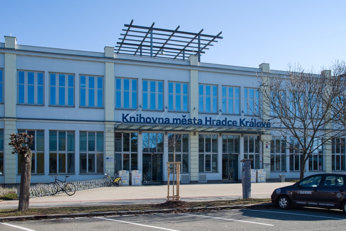 Také Studijní a vědecká knihovna, která poskytuje odborné služby v rámci celého východočeského regionu, se v roce 2008 přestěhovala do úplně nového objektu. Na netypický vzhled tohoto objektu jsem si zatím nedokázala zvyknout. Možná bych to supermoderní řešení snáze akceptovala, kdyby tato budova stála na jiném místě. Porovnání s nedaleko stojícími budovami univerzitního kampusu a s typickými věžemi starého města v pozadí se mi zdá jako pěst na oko. A patrně nejsem sama, kdo má k této budově výhrady. Posměváčci jí říkají “ementál”. Jistě vás napadne proč, když se pozorně podíváte na přiloženou fotografii.