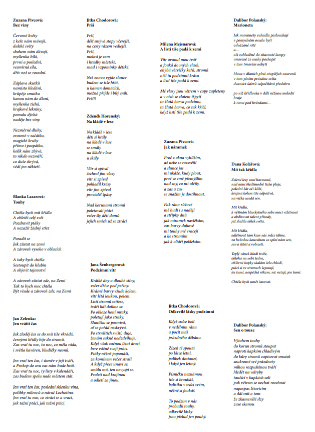 Miloslav Křížek, Lenka Měkotová, Libuše Heulerová, Vladislava Dejmková, Hana Starkbaumová, Anna Čípová, Martina Růžičková, Marie Měchurová, Ladislav Strouhal, Alena Vávrová, Naděžda Špásová, Blanka Lazarová, Marie Seitlová, Miluše Hasenohrlová, Alena Tollarová, Eva Mužíková, Lenka Měkotová, Lubomír Měkota, Zdenka Žichovská, Vlasta Ladýřová, Šárka Nováková, Věra Ježková, Jitka Lukášová, Helena Křenková, Eliška Murasová, Miluše Převrátilová, Soňa Prachfeldová, Marta Nosková, Bob Gajdoš, Irena Mertová, Jan Kutílek, Libuše Hvězdová, Věra Šmerdová.