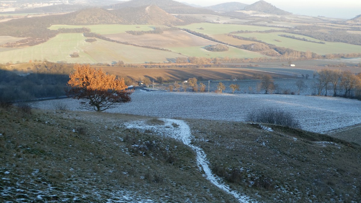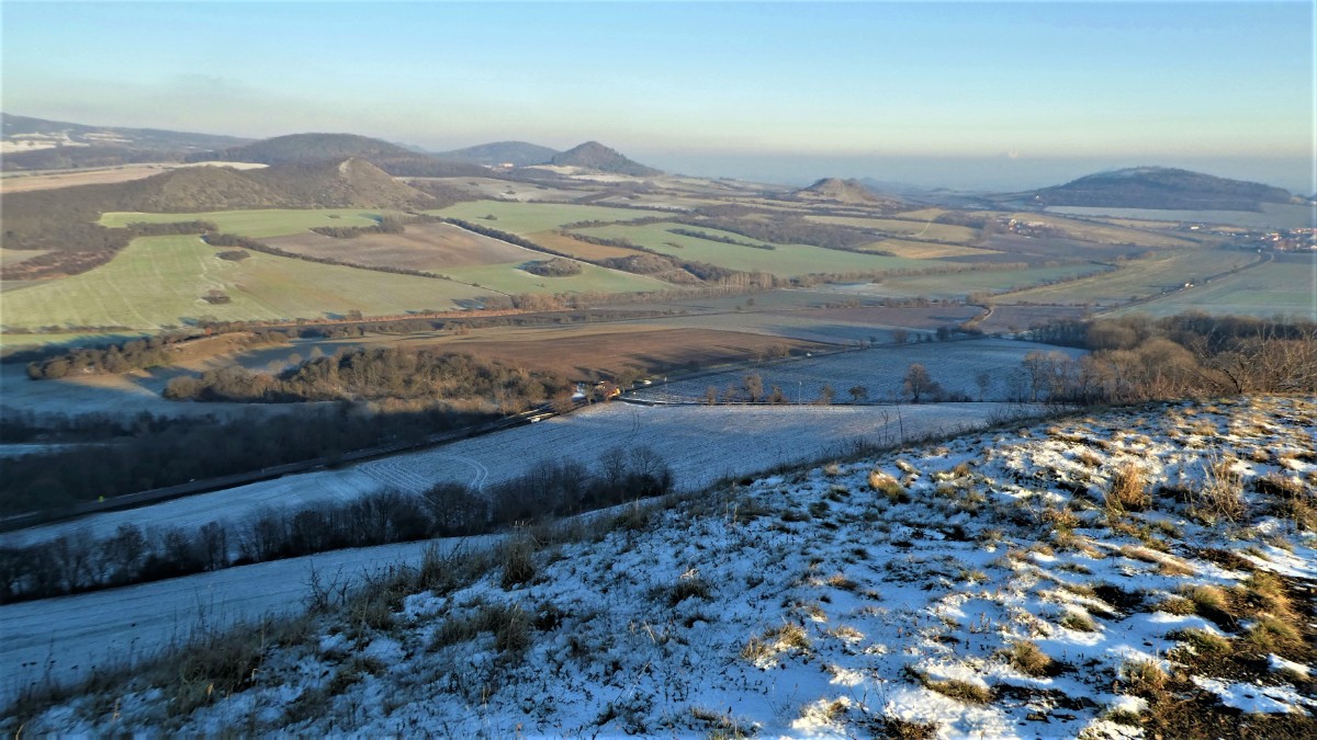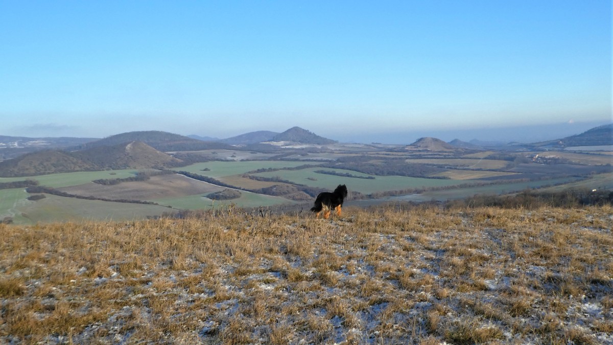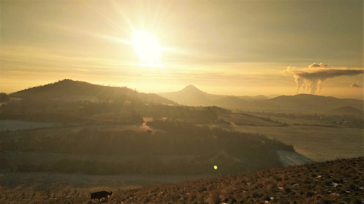 Zaparkovala jsem a vydala se nahoru s mojí kamarádkou Mystynkou. Nikde ani živáčka, mráz pěkně štípal do tváří, za chvilku jsem byla na vrcholku a kochala se pohledem na České středohoří. Už bylo poněkud mlhavo, ale výhled byl ještě dobrý. Nade mnou přeletělo letadlo. docela nízko, pilot mi zamával a já jsem opět byla v euforii ze života, z krás, které nás obklopují. Zapomněla jsem na ten tísnivý pocit, který ve mě vzbudila havárie aut.