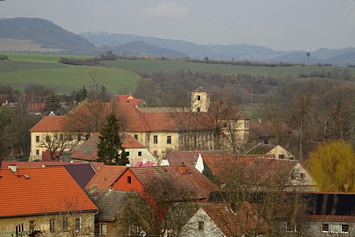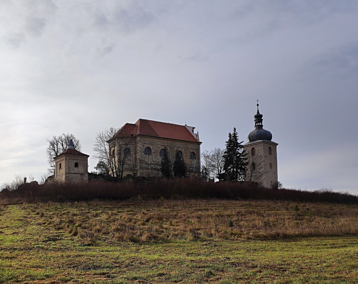 Z Holého vrchu jsem sešla druhou stranou k silnici, pokusila se o trávu očistit boty a vydala se do Encovan. S překvapením jsem zjistila, že tamní léta chátrající zámek se opravuje. Silnička mě vedla dál a v teple, nezvyklém pro 2. leden, jsem s rozepnutou bundou došla do Hrušovan, kde můj první výlet roku 2023 skončil. Na 10 km jsem prošla 4 vesnice, vyšla na návrší s kostelem a přešla celý kopec.
