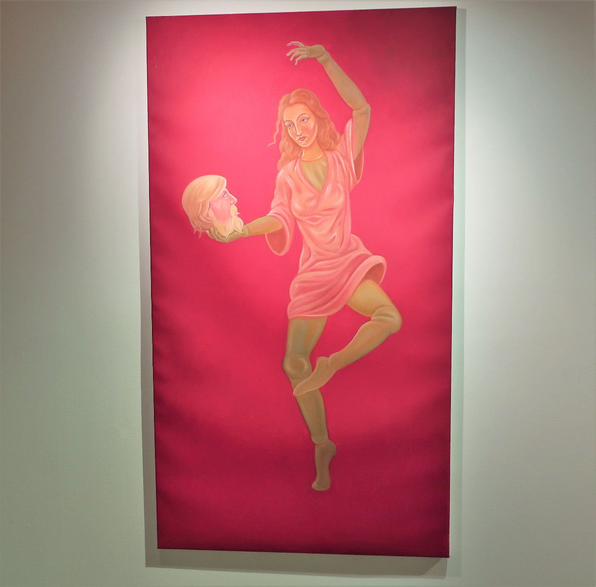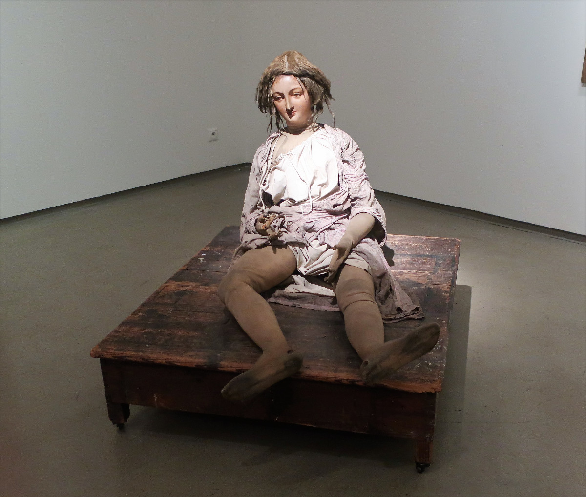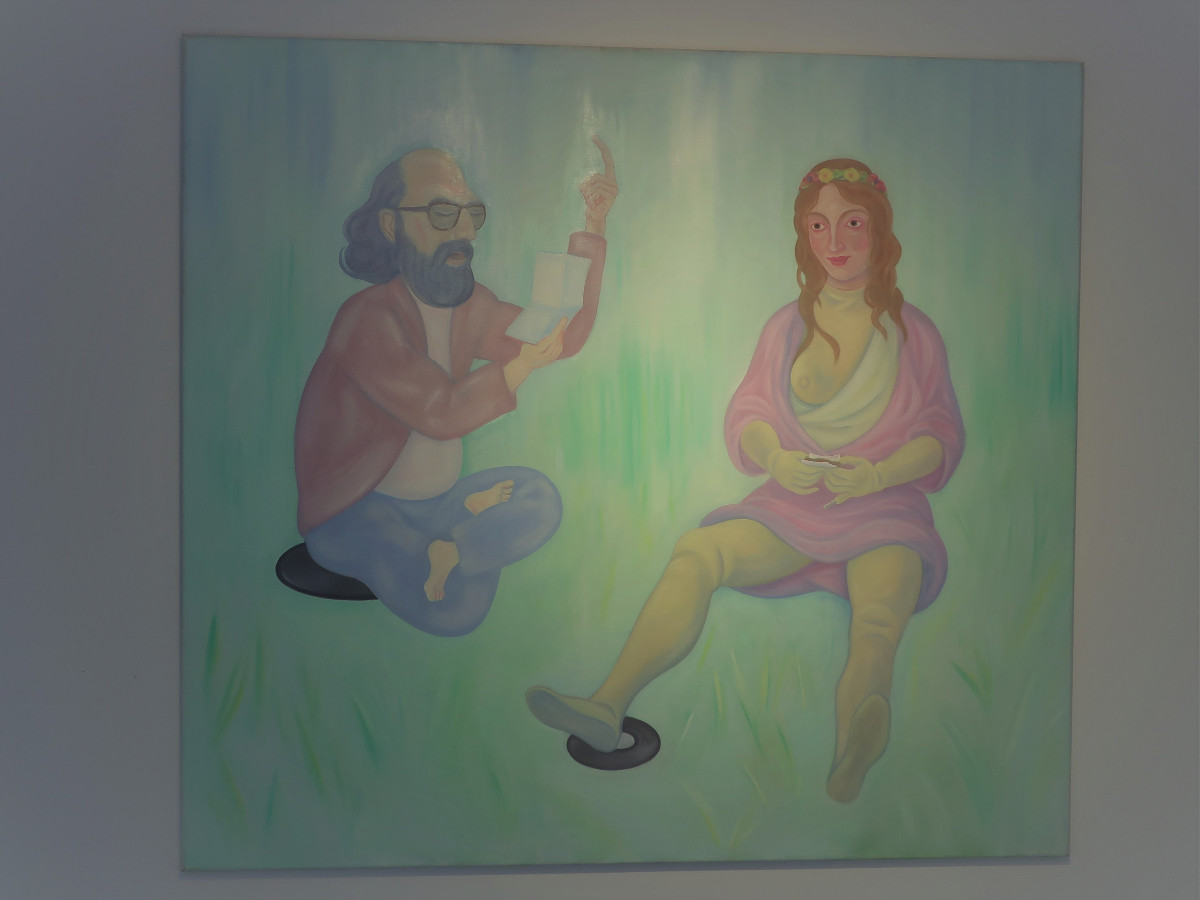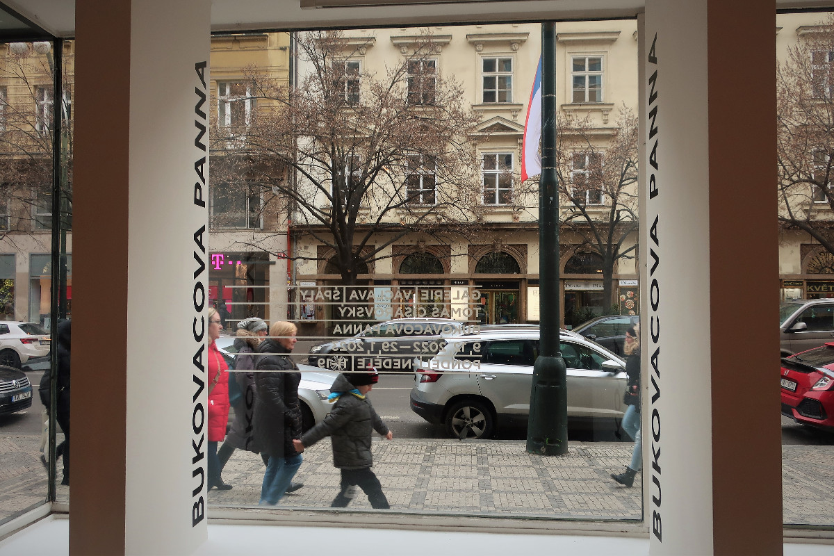 Její název „Bukovacova panna“ nám nebyl jasný, dokud jsme neuviděly obrazy i samu pannu. Tu malíř dovezl ze svého ateliéru do výstavní síně, kde se pohodlně uvelebila a sleduje návštěvníky z odstupu svého století – hádám devatenáctého? Musela toho hodně vidět a zažít, ale jen se dál dívá… Malíře protáhla nejrůznějšími událostmi a společností různých známých osobností (včetně Hurvínka). To byla jízda! A my jsme se také dívaly a hádaly, koho že to malíř namaloval kouzelnými barvami. Všechny jsme nepoznaly, dodatečně pak načetly v knize.
