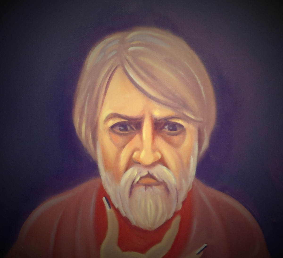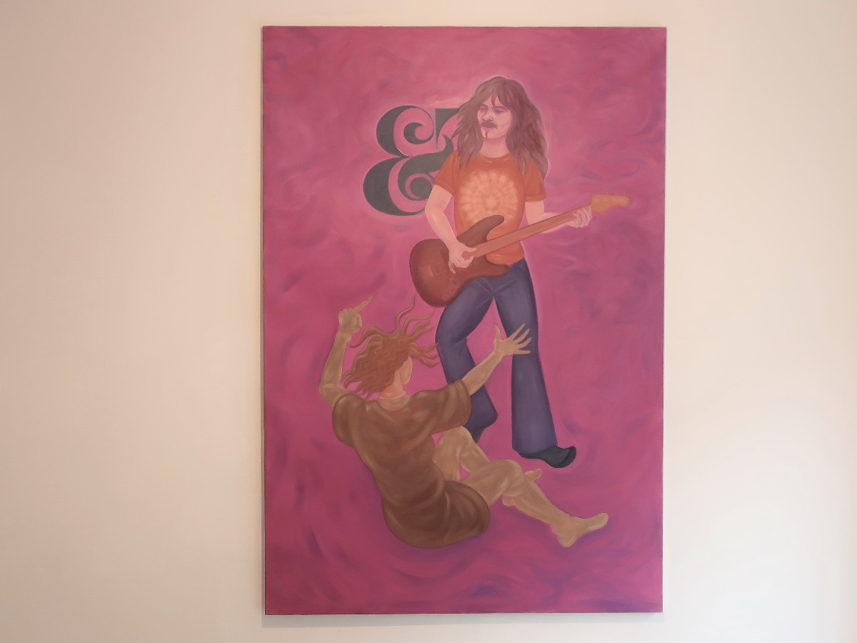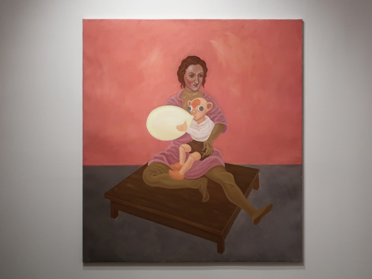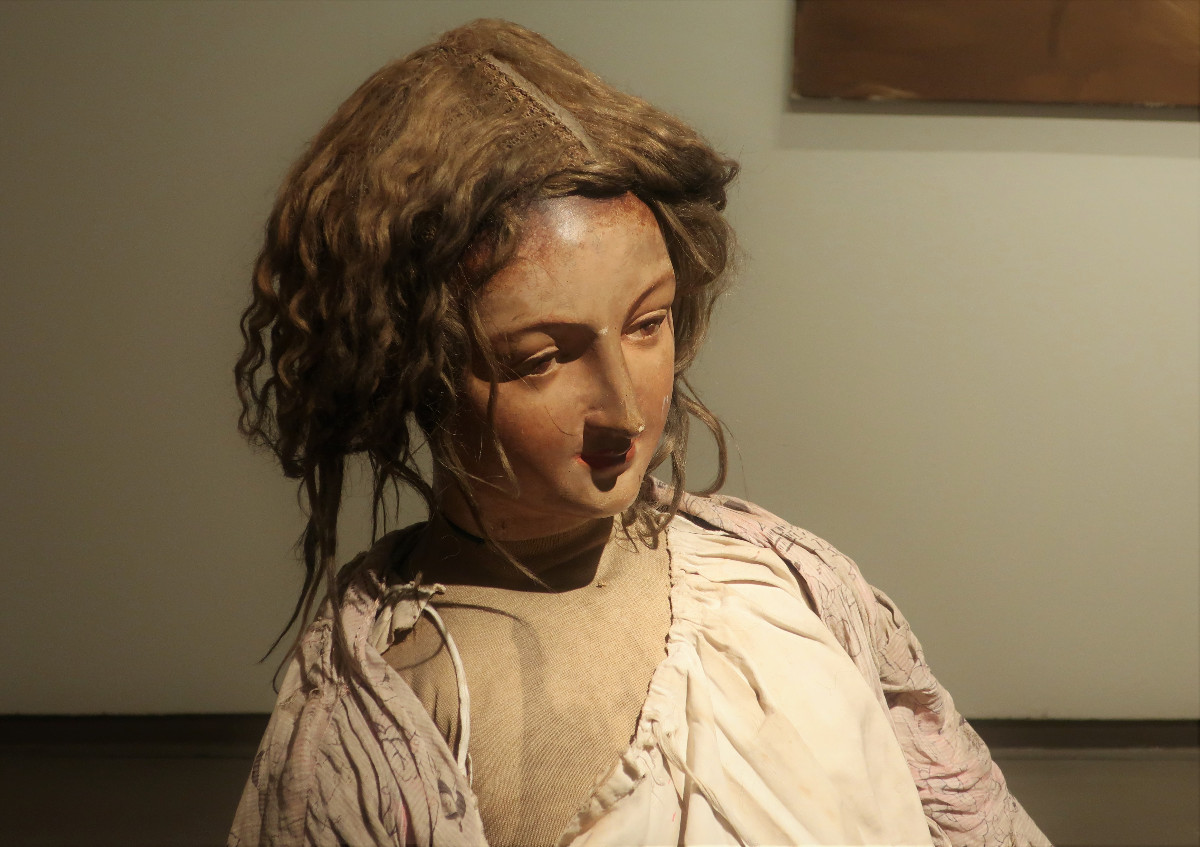 Její název „Bukovacova panna“ nám nebyl jasný, dokud jsme neuviděly obrazy i samu pannu. Tu malíř dovezl ze svého ateliéru do výstavní síně, kde se pohodlně uvelebila a sleduje návštěvníky z odstupu svého století – hádám devatenáctého? Musela toho hodně vidět a zažít, ale jen se dál dívá… Malíře protáhla nejrůznějšími událostmi a společností různých známých osobností (včetně Hurvínka). To byla jízda! A my jsme se také dívaly a hádaly, koho že to malíř namaloval kouzelnými barvami. Všechny jsme nepoznaly, dodatečně pak načetly v knize.