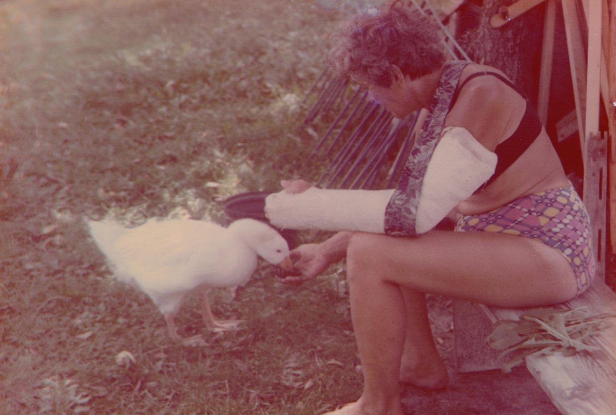 Když jsme šli na procházku, tak slepička si sedla tatínkovi na rameno a šla s námi. Pokud jsme šli někam dál, tak jsme Máńu nechávali na zahradě a když jsme se vrátili, Máňa seděla na prahu a vítala nás.