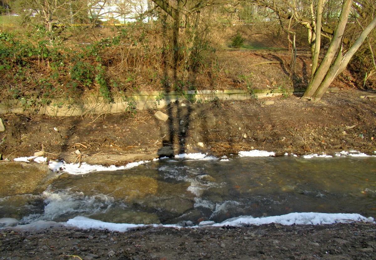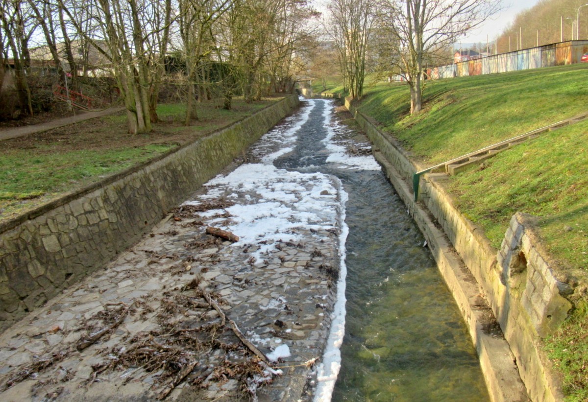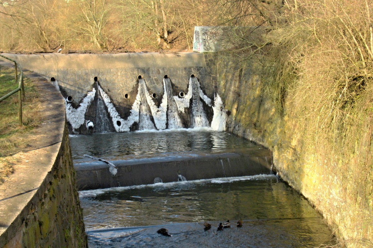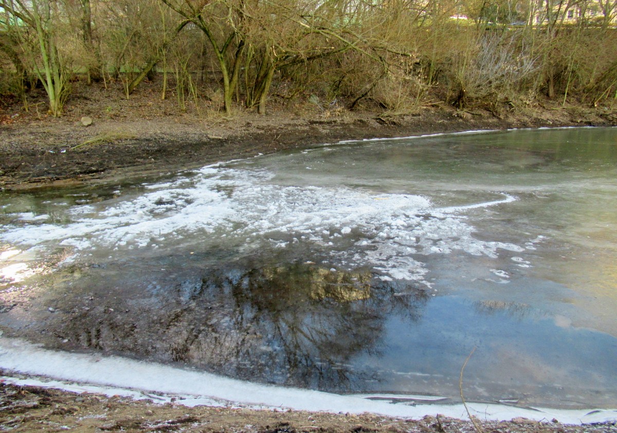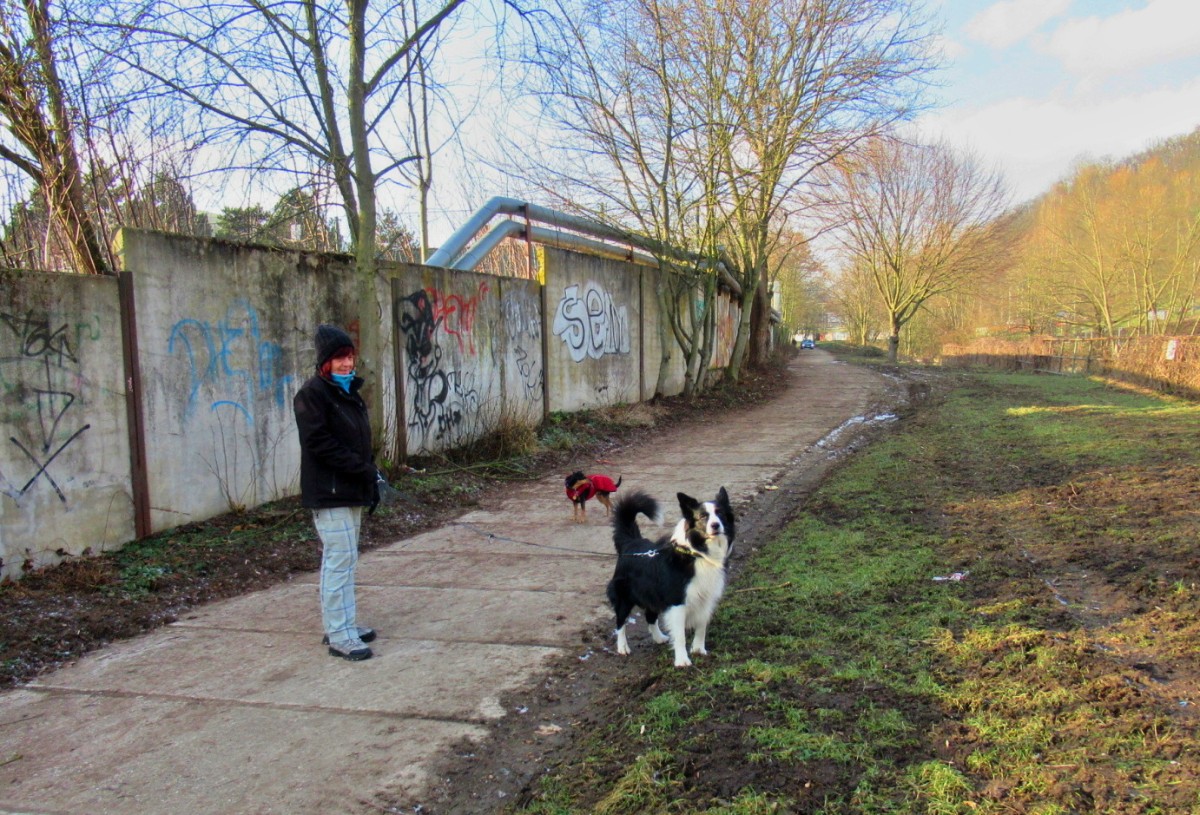 Na začátek února bylo spíš jaro než zima, vzala jsem s sebou sáček se suchým chlebem pro kačenky, kterých tam je docela dost. Aspoň jsem to očekávala. Chyba lávky, sešla jsem až k vodě, ale po ptácích ani vidu ani slechu. Rybník byl částečně zamrzlý, na břehu byla hromada bláta a já měla co dělat, abych si nedala bahenní koupel, i když je to prý zdravé. Rozházela jsem svačinku po ledě, snad se k ní kačky dostanou. Potkali jsme jen jednu paní s dvěma pejsky, jinak ani noha. No a když jsme přišli na nový můstek a já se chystám vyfotit splav, vidím pod sebou sedět tři kačenky, bohužel chleba byl jinde. Snažila jsem se zachytit, co se dalo, jsme malé sídliště, za tu dobu kolem nás vyrostla malá džungle a nechybí tu ani skály. A víte co je důležité? Nad námi je Ústecká nemocnice, párkrát už jsme její blízkost využili. Bohužel stromy a zeleň kolem nás se zalíbily i divokým prasatům, máme jich tu požehnaně a prý se s tím nedá nic dělat.