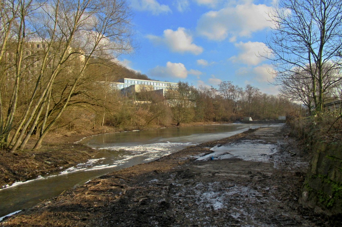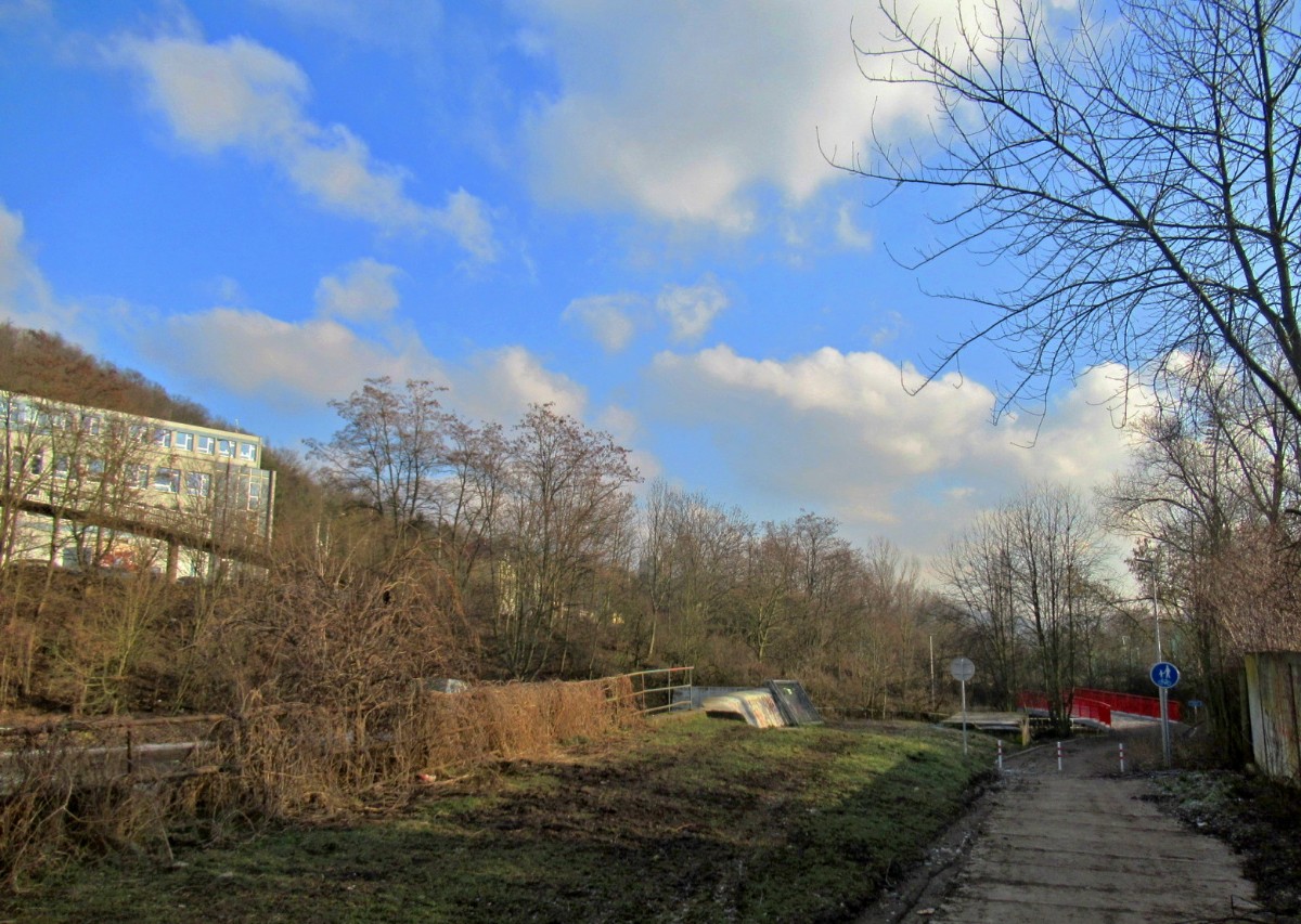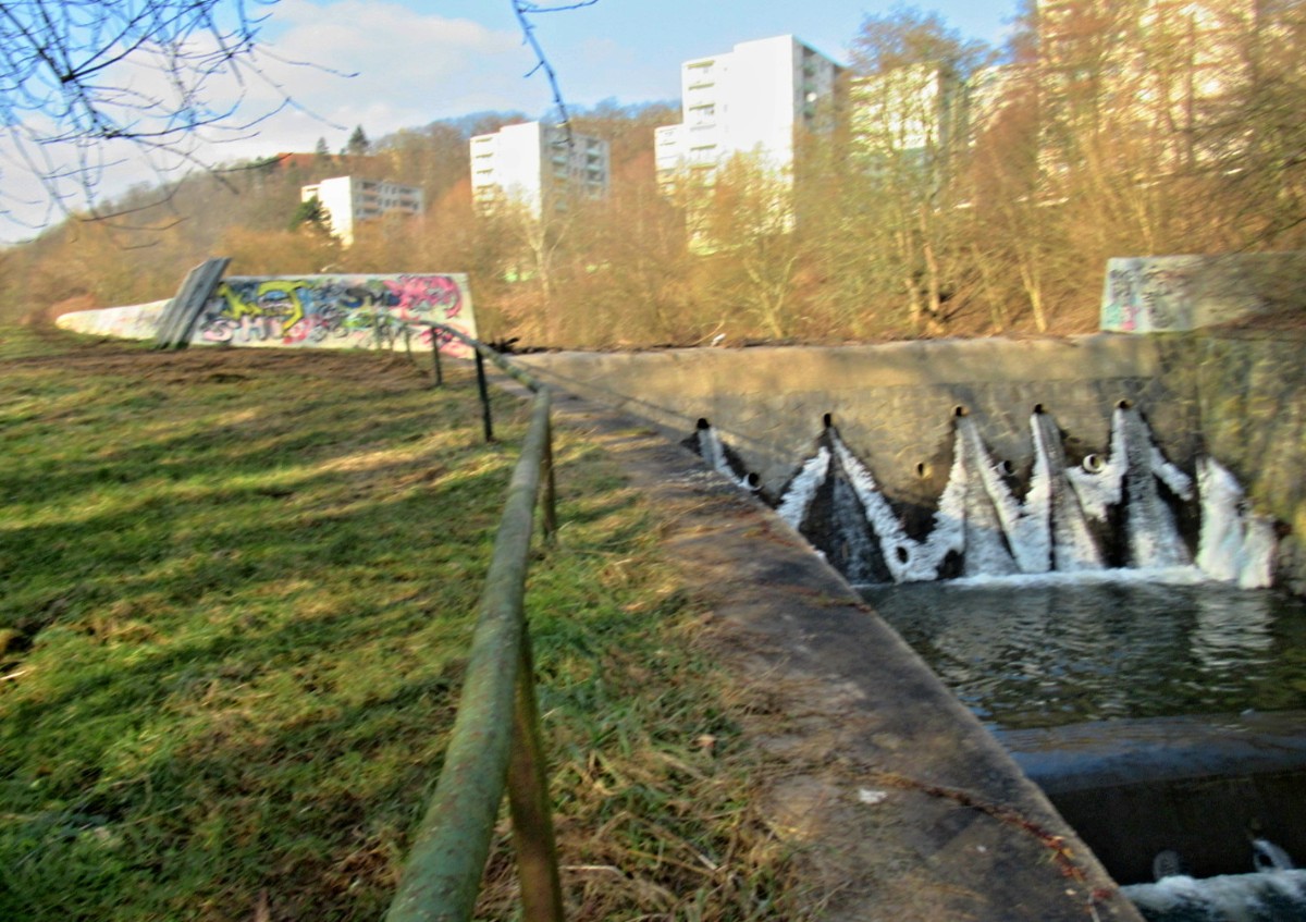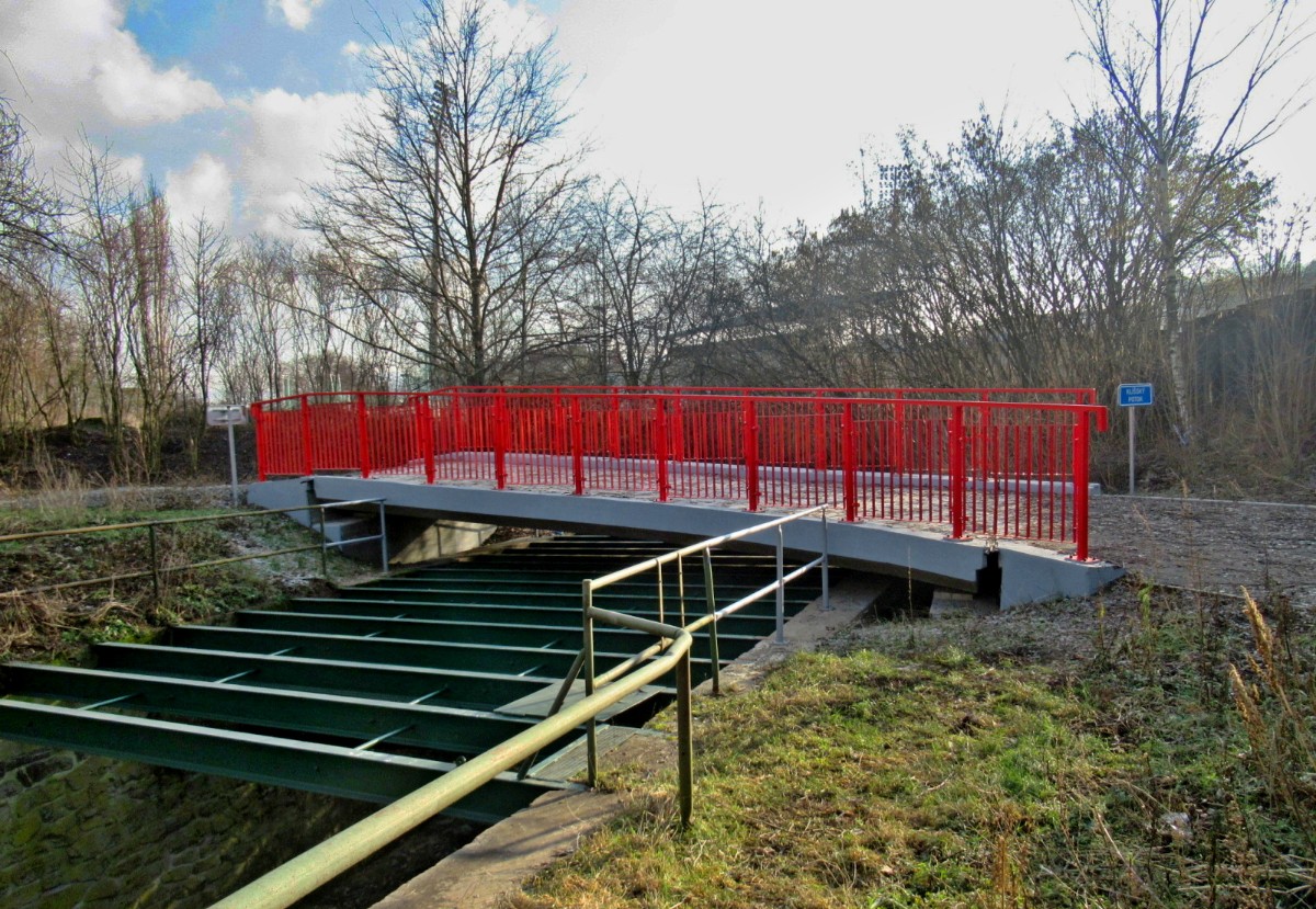 Na začátek února bylo spíš jaro než zima, vzala jsem s sebou sáček se suchým chlebem pro kačenky, kterých tam je docela dost. Aspoň jsem to očekávala. Chyba lávky, sešla jsem až k vodě, ale po ptácích ani vidu ani slechu. Rybník byl částečně zamrzlý, na břehu byla hromada bláta a já měla co dělat, abych si nedala bahenní koupel, i když je to prý zdravé. Rozházela jsem svačinku po ledě, snad se k ní kačky dostanou. Potkali jsme jen jednu paní s dvěma pejsky, jinak ani noha. No a když jsme přišli na nový můstek a já se chystám vyfotit splav, vidím pod sebou sedět tři kačenky, bohužel chleba byl jinde. Snažila jsem se zachytit, co se dalo, jsme malé sídliště, za tu dobu kolem nás vyrostla malá džungle a nechybí tu ani skály. A víte co je důležité? Nad námi je Ústecká nemocnice, párkrát už jsme její blízkost využili. Bohužel stromy a zeleň kolem nás se zalíbily i divokým prasatům, máme jich tu požehnaně a prý se s tím nedá nic dělat.