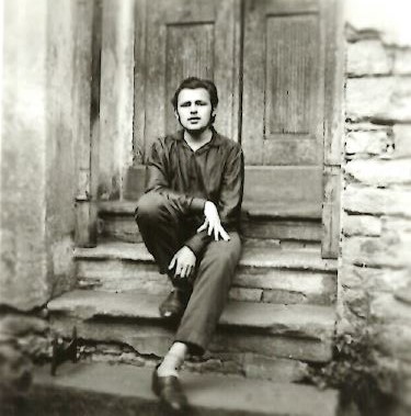 Nepředstavujte si schody k paneláku. Každý venkovní schod byl jiný, jinak vysoký, jinak široký a taky nebyly ze stejného kamene. Třetí v pořadí byl asi pískovcový. Kluci, když tam seděli, tak ho všelijak škrábali svými kudlami. Jiné schody byly z fortelnějšího kamene, hlavně však celé schodiště bylo strmé a dobře se z něho padalo. Prohlédněte si jediný snímek, na němž jsou naše schody a všimněte si prudce inteligentního mládence, který tam sedí. Je to autor.
