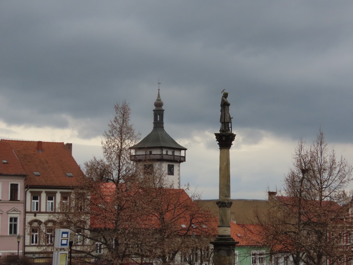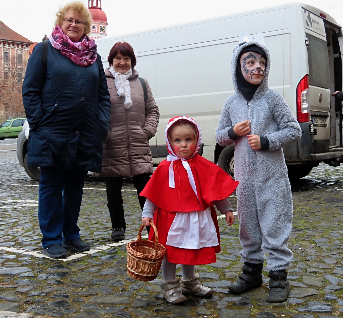 První zastávka byla u před pár dny po rekonstrukci znovu otevřené knihovny. Prošel kolem zámku a zastavil se před naším infocentrem. Po tekutém občerstvení se posílený vydal dál. Posilnění bylo nutné, neboť – jak známo – roudnické náměstí je do kopce. Kolem pošty se průvod stočil na navazující menší Husovo náměstí a na jeho konci dorazil ke kulturnímu domu Říp.