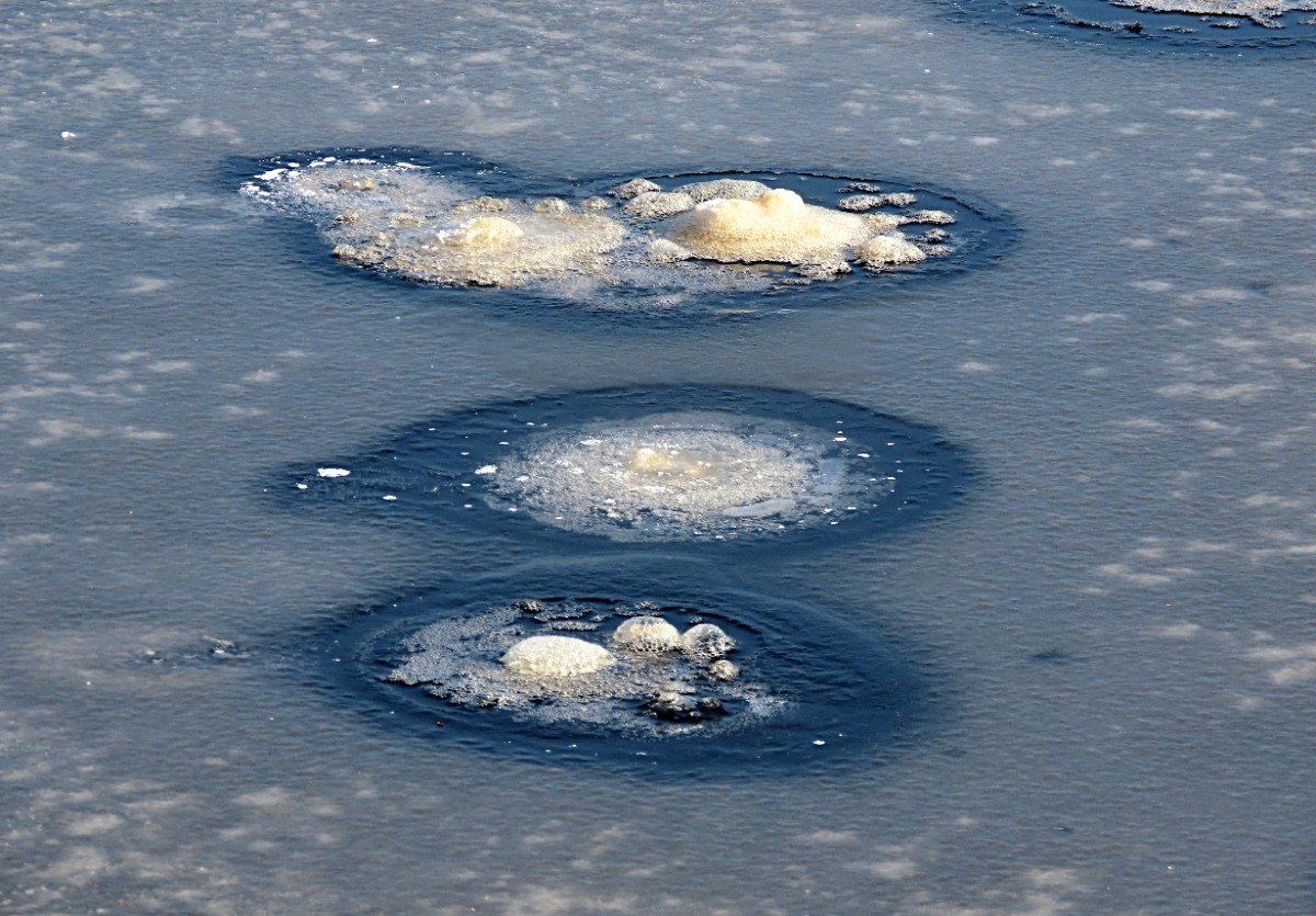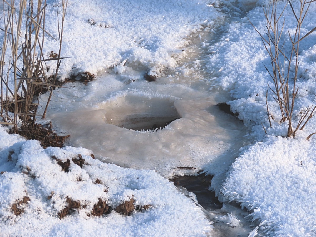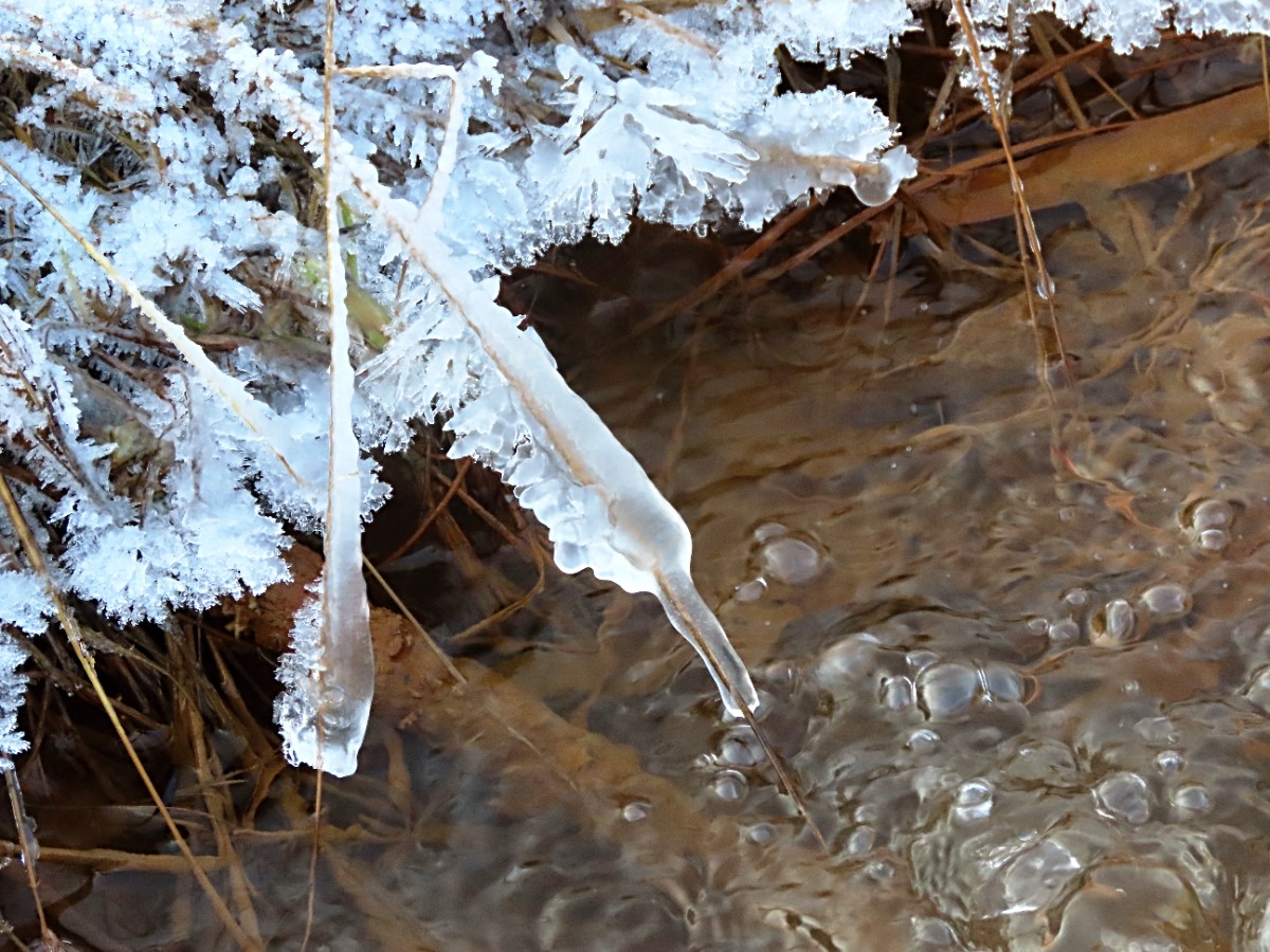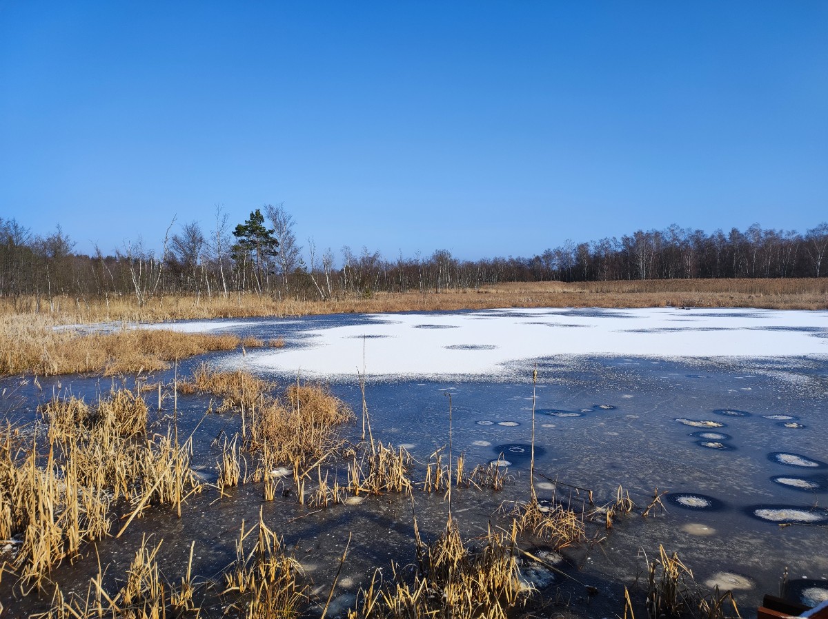 Řekla bych, že skoro povinným je při pobytu ve Františkových lázních výlet do Národní přírodní rezervace Soos. Nenechali jsme si ho ujít ani v zimě. Přiznám se, že jsem doufala, že tam nebude ani noha a ani se nebude vybírat vstupné. Moje očekávání se splnilo jen částečně. V pokladně nikdo neseděl, ovšem turniket u vchodu očekával přiložení vstupenky, zakoupené k tomu účelu v automatu. Seniorské vstupné 50 Kč není nijak ohrožující naše živobytí. Soos je rozlehlé rašeliniště a minerální slatiniště s prameny minerálních vod. Část z něho je přístupná po dřevěných chodnících. Procházíte se v místech, kde to kolem vás tu více, tu méně bublá. Jedná se o vývěry oxiku uhličitého v tzv. mofetách. Lidově se jim říká bahenní sopky. Nejkrásnější upravený Císařský pramen si v létě vyfotíte kvůli spoustě návštěvníků jen těžko, teď jsme u něho byli sami. A pohled na živé mofety, stále probublávající skrz led, byl kouzelný.