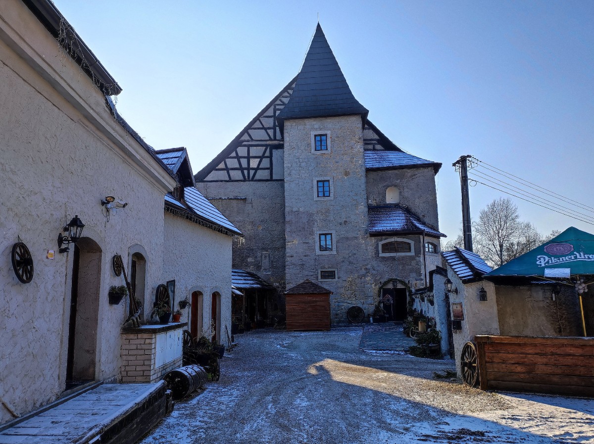 Rybník Amerika, navazující na lázeňský park, byl zamzlý. Ve sluníčku na ledu zářila bělostná vrstvička sněhu a zvířata v místním zookoutku se tvářila spokojeně. Restaurace Chaloupka u vody je otevřená i v zimě. Celoročně otevřený je i hrad Vildštejn, vzdálený asi 6 km od Františkových lázní. Tomu po "hospodaření" státního statku už přes 20 let postupně soukromý majitel vrací jeho původní krásu. V pestře vymalované hodovní síni si u krbu s praskajícím dřevem můžete vychutnat některou z místních specialit. Jeli jsme se podívat i na hrad a zámek Libá a hrad Seeberg s podobnými osudy, ty však jsou v zimní sezóně zavřené.