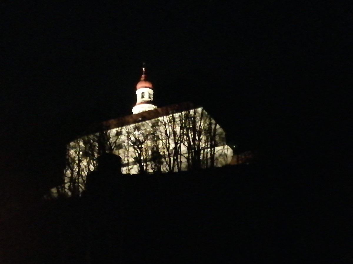 Zámek v noci – trochu roztřesený z focení přímo z ruky.