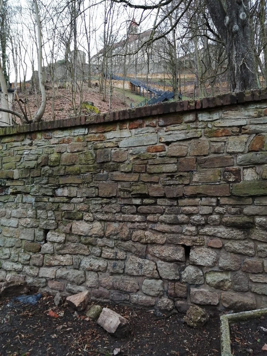 Zeď: tady stával sloup, do něhož se odvážně padalo.