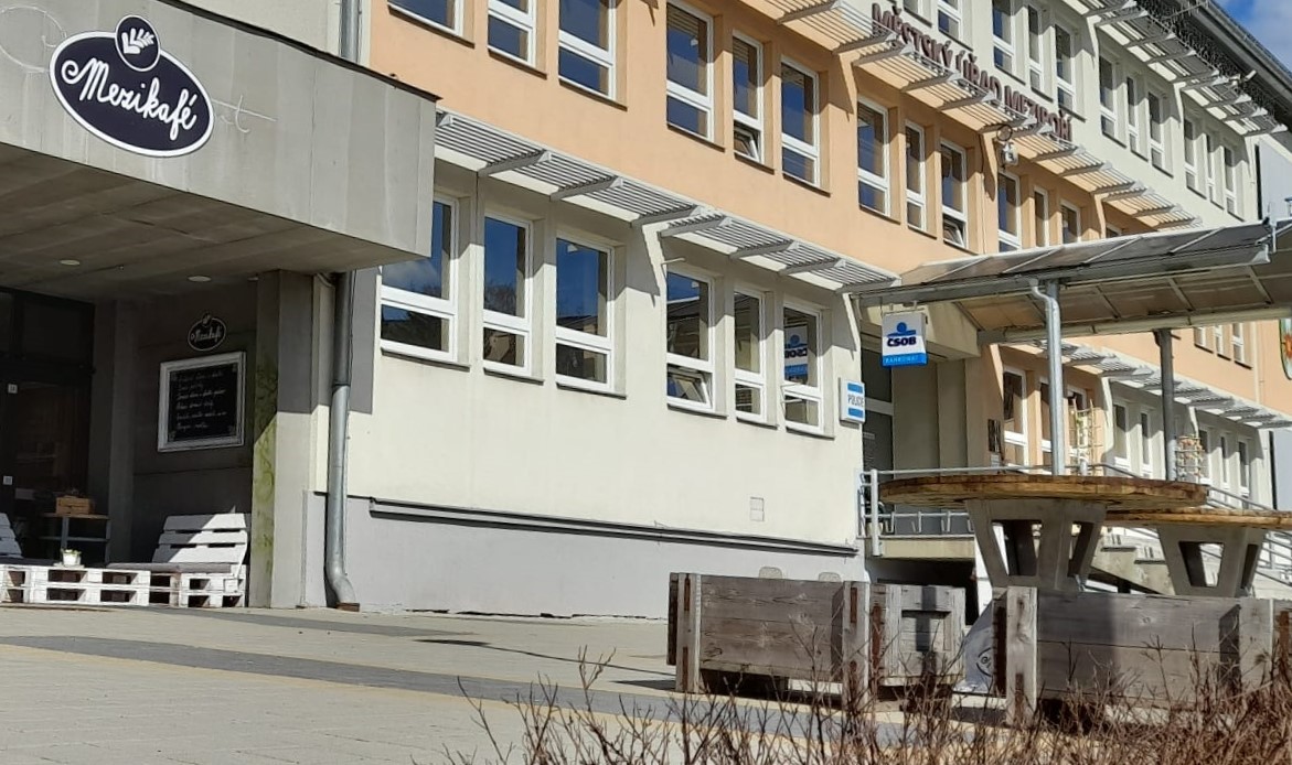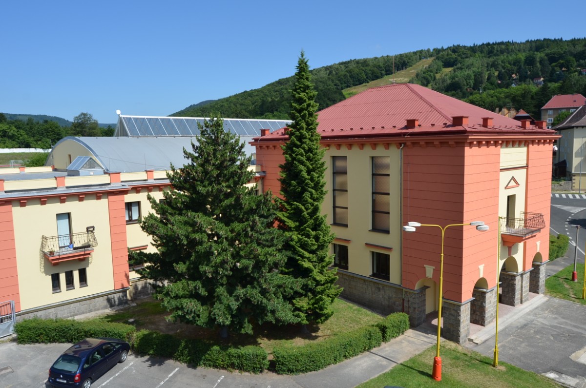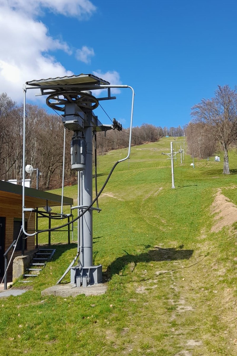 Opuštěná jarní sjezdovka Dříve sokolovna, dnes sportovní hala