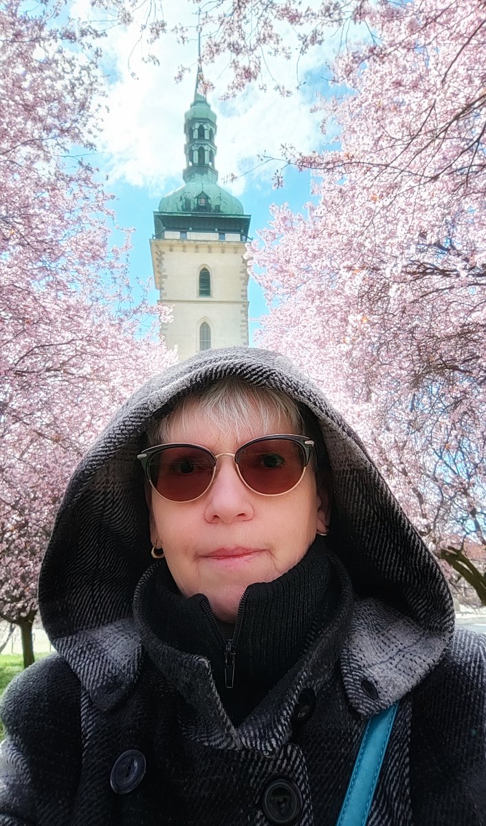 Nedávno jsme jeli tramvají k přesunutému kostelu s rybníkem. Chtěla jsem vidět, jaké to tam je, když jsou stromy rozkvetlé. A byla to nádhera, ta růžová před kostelem. Ač tu žiji od narození, tu rozkvetlou krásu u kostela jsem viděla prvně.
