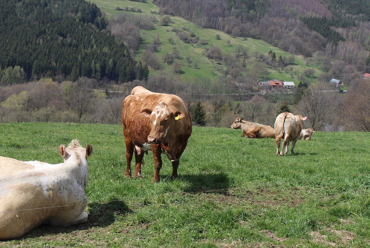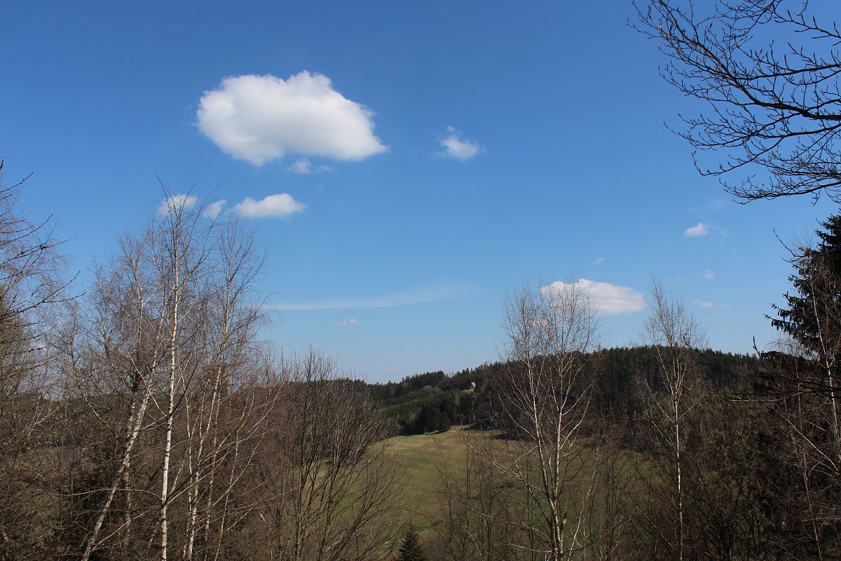 Rozhledy do okolí jsou úchvatné, zvlášť, když je takové blankytné nebe, na jaké jsme měli štěstí my. Obloha byla posázena kroužícími rogaly. Kluci jich napočítali 13. Když jsme se dost pokochali pohledem do kraje a posilnili se dobrou svačinou, vyrazili jsme zpět asi 2 km stejnou cestou. Potom jsme u Malého Lopeníku odbočili na žlutou značku a po ní jsem sešli k chatě Velký Lopeník, která nám nebyla neznámá. Před pár lety jsme tam strávili příjemnou týdenní dovolenou. Na teploměru bylo přes 20 stupnů C a bylo potřeba doplnit tekutiny. Pivo bylo dobře vychlazené a vnukům chutnala dobrá kofola. Bazén na koupání byl ještě zazimovaný, ale kluci si v okolí chaty našli zábavu. Pasoucího se osla a jezírko plné ryb.
