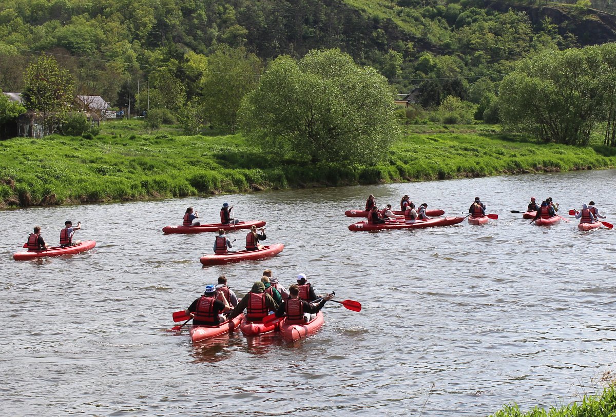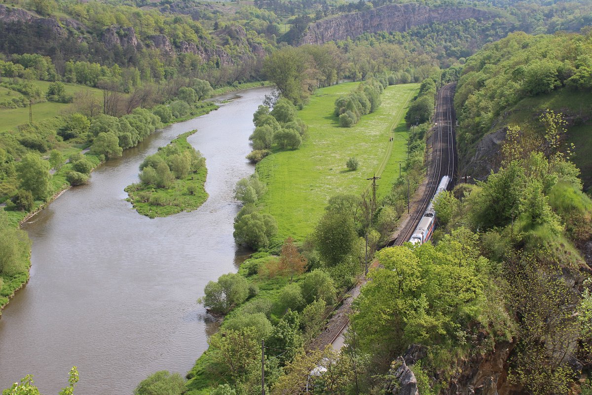 Ve čtvrtek po snídani jsme vyrazili na výlet podél řeky Berounky, která Srbskem protéká, směrem k Tetínu, jenž se majestátně tyčí nad jejím pravým břehem. Když se podařilo dát všechny zatoulané turisty dohromady, mohla začít zajímavá prohlídka s výkladem o historii tohoto magického místa. My dva s manželem jsme to již před dvěma lety absolvovali, proto jsme po odpočinku na nádherné vyhlídce do údolí Berounky, pokračovali v cestě do Berouna. Jarní příroda se krásně zelenala, kvetly šeříky a vlaky nad řekou jezdily sem a tam. Nedaleko před Berounem jsme narazili na početnou skupinu vodáků, kteří ujížděli směrem k místu našeho pobytu.