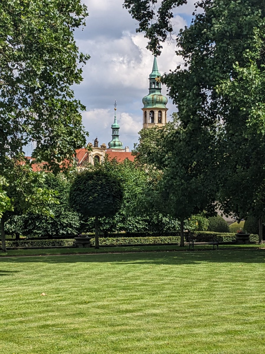 A doporučení závěrem: po vejití do zahrady si prohlédněte ve výklenku zdi Černínského paláce panelovou výstavku fotografií „I diplomaté fotografují“, pak si projděte celou zahradu, usaďte se na chvíli na lavičce v její západní části a kochejte se nejen pohledem na vzrostlé stromy, které jsou součástí anglického parku, ale také výhledy na klášter Kapucínů a věže Lorety. Budete-li mít štěstí, uslyšíte k tomu zvonkohru Lorety (já ji slyšel v rozpětí 15 až 15:10). A pokud vás toto vše dostatečně neomámí, po vyjití ze zahrady se dejte na Loretánském náměstí vlevo ulicí směřující na Nový svět a určitě vám bude blaze na duši.
