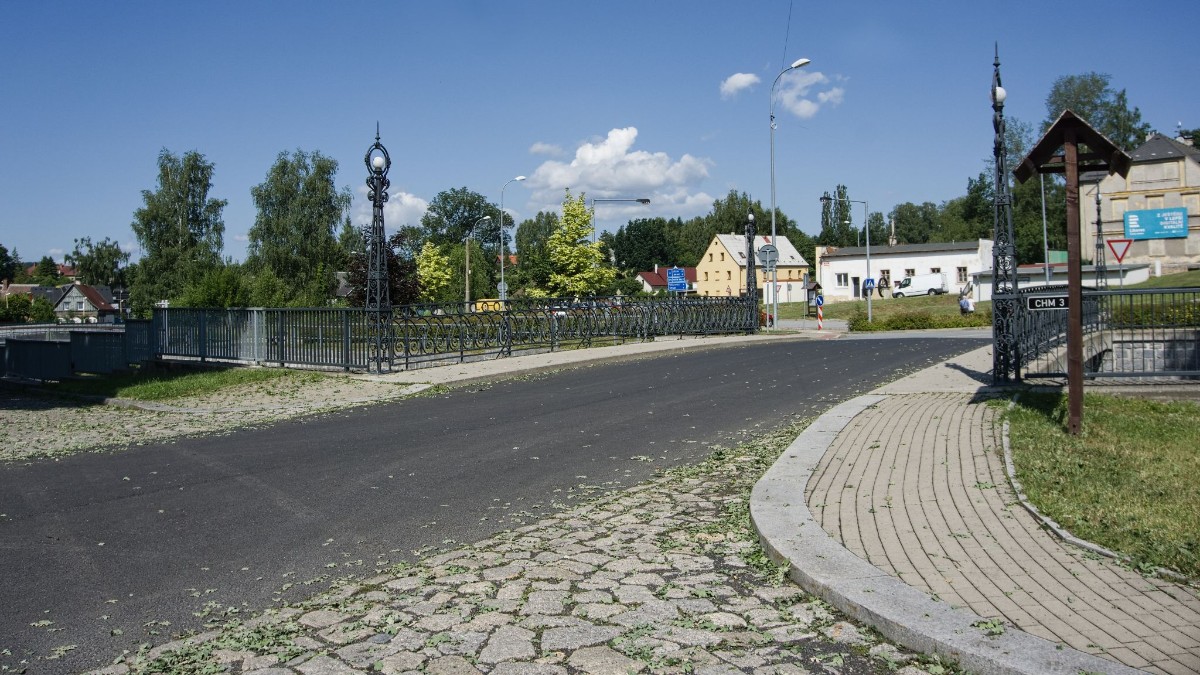 V roce 1907 byl dobudován ocelový silniční most. Podle tehdejší módy byl doplněn secesně dekorovanými kandelábry, zábradlím a lampami. V roce 1993 prošel velkou opravou. Bohužel při povodních na začátku srpna 2010 ho divoké vlny Jeřice strhly. My jsme již procházeli řeku po novém mostě, který splňuje současné normy, ale zároveň na něm bylo použito zachráněné původní zábradlí a doplněny byly i kopie původních secesních ozdob.